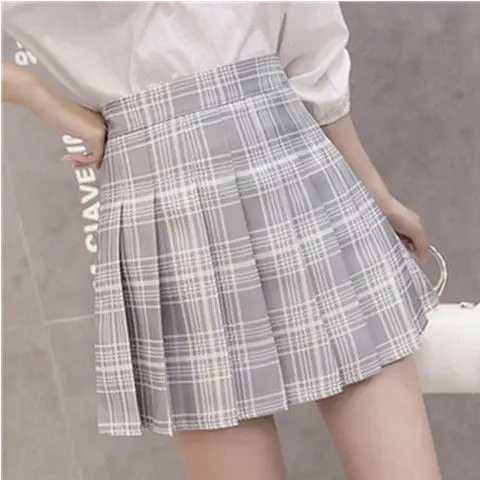 Женская плиссированная мини-юбка, летняя юбка в клетку, с завышенной талией