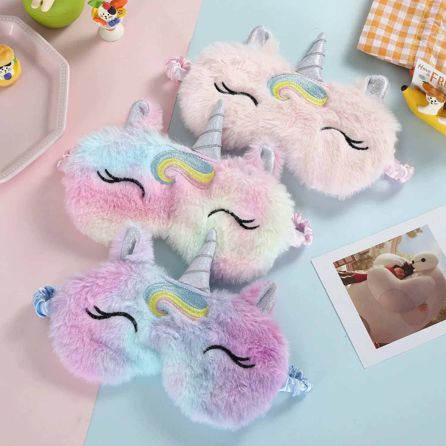 Плюшевая маска для глаз в виде единорога для девочек, детская маска...