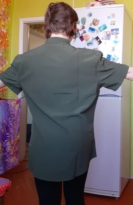 Рубашка хорошего качества, материал хорошо тянется но лучше брать на два размера больше, чем обычно
