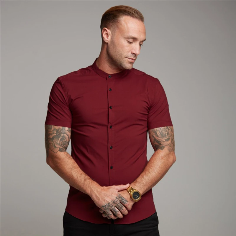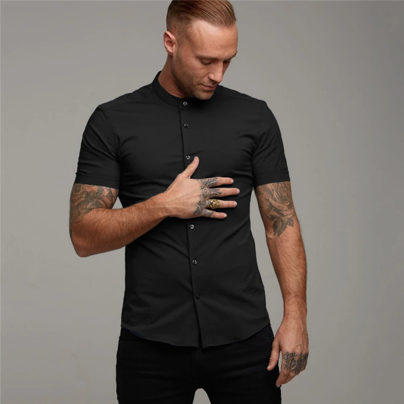 Рубашка мужская спортивная для фитнеса, хлопок, короткий рукав, модная дышащая, повседневная, летняя