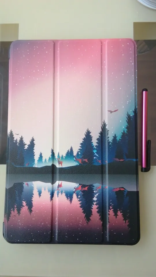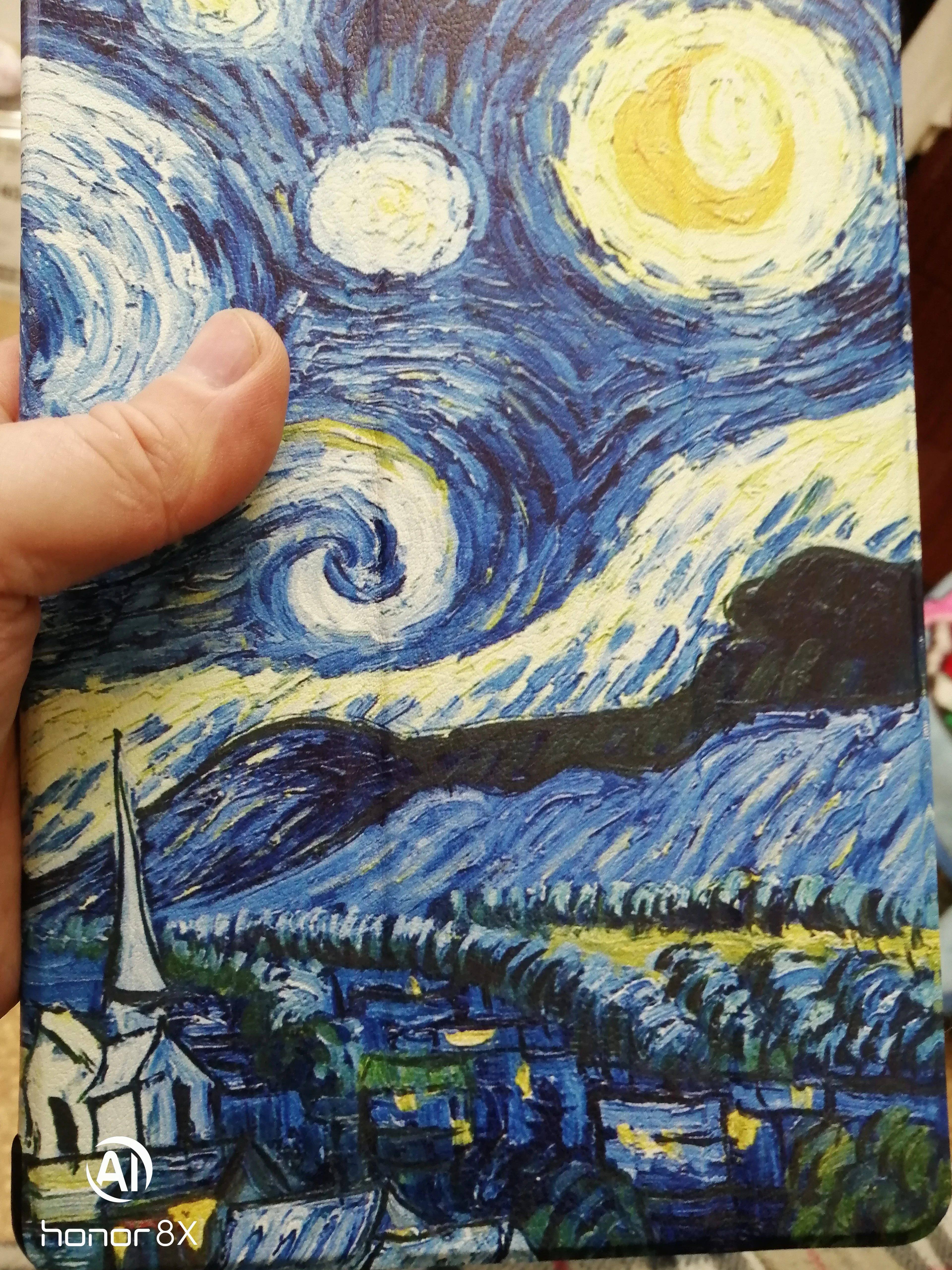 Шикарный чехол! Яркая картинка, плотный, не гнётся. Повредить планшет не получится при всём желании, сел идеально. За такую цену просто чудо. Доставка две недели, пришёл на почту, проблем при доставке не возникло, с продавцом не общались. В подарок положили стилус — мелочь, а приятно <3