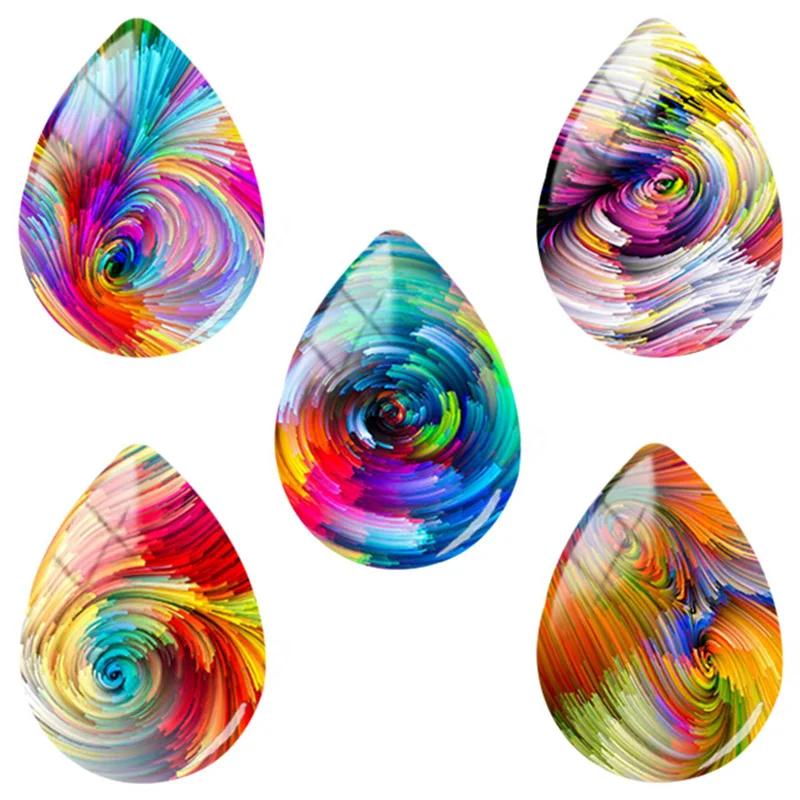 TAFREE 18x25 мм ручная работа, цветные вращающиеся узоры, стеклянные кабошоны в форме капли, купольная плоская задняя часть ювелирных изделий CX22