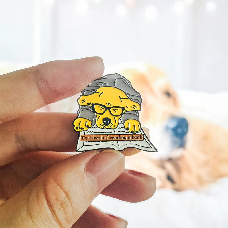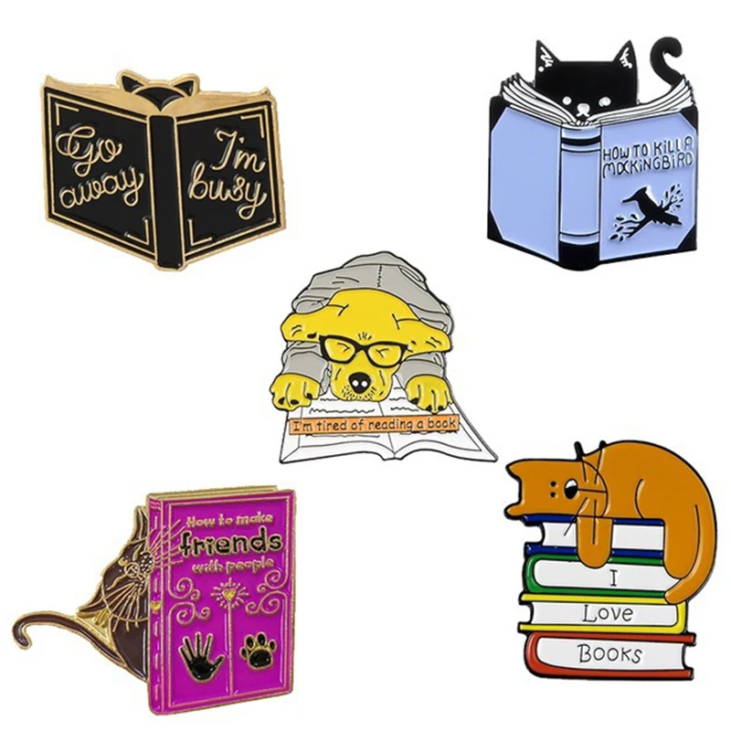 Мультяшная креативная брошь из сплава в виде животного, милый щенок, кошка, любовь, книга для чтения, декоративный значок для рюкзака