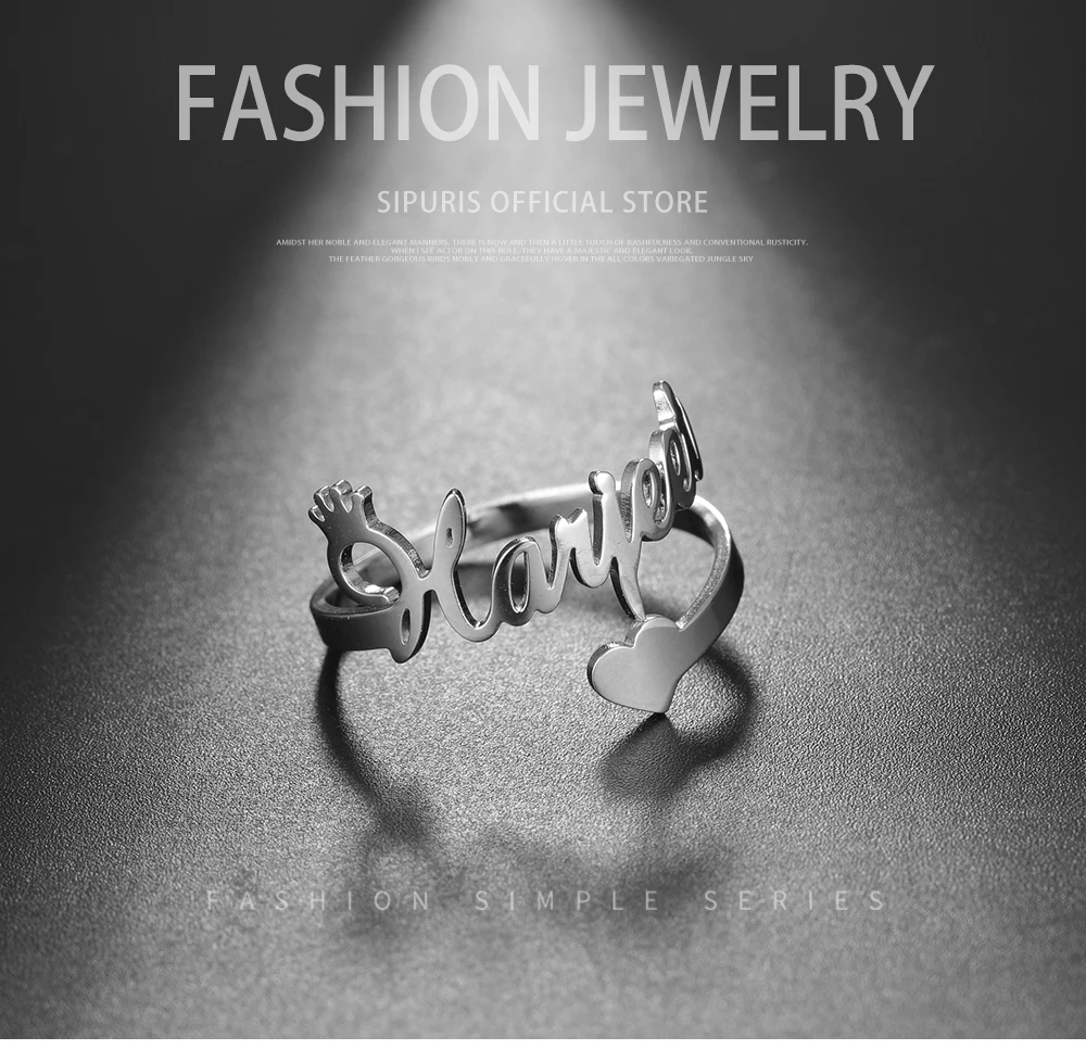 Женское кольцо из нержавеющей стали Sipuris, кольцо с персонализированным именем, короной, сердцем и звездами, ювелирные изделия, бесплатная доставка, подарки для пар