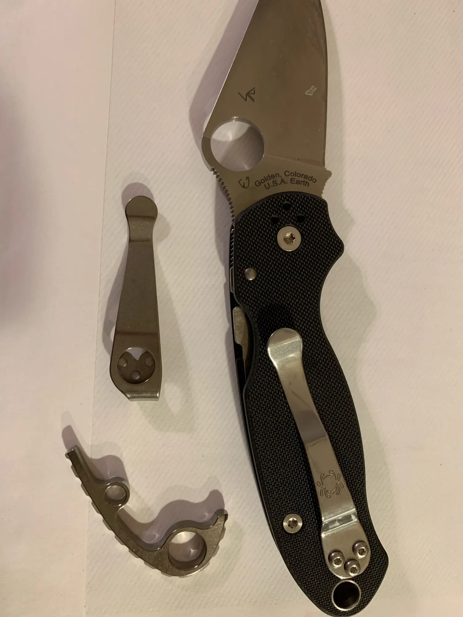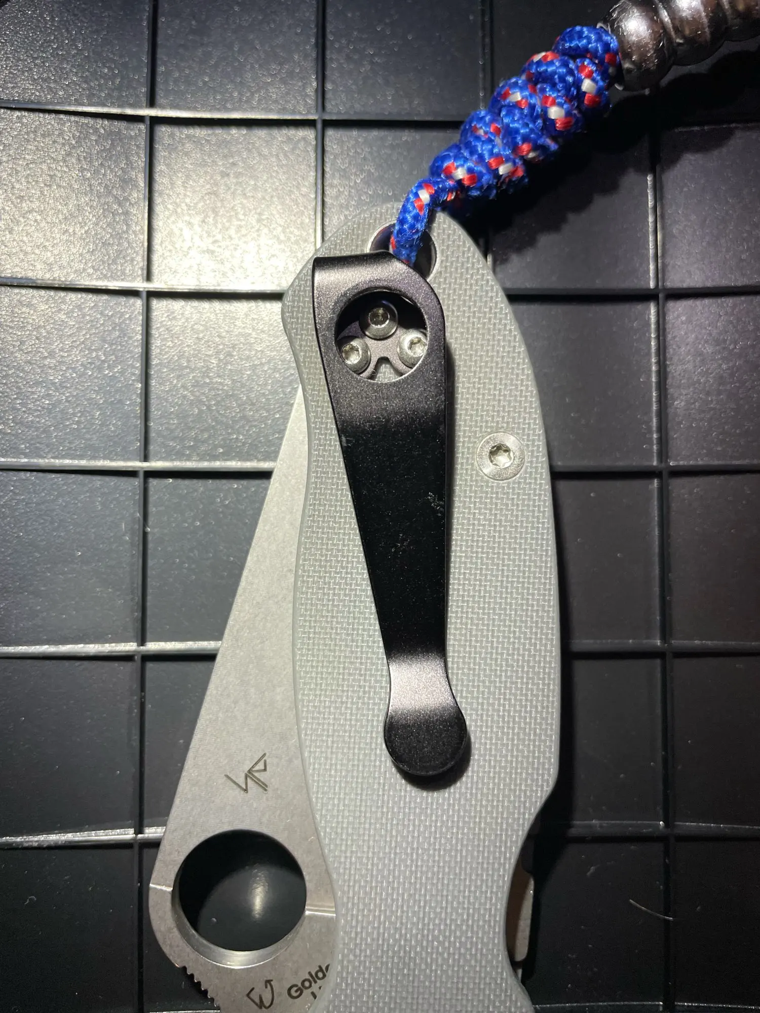 Это отлично смотрится! Но прочность на растяжение этих зажимов не очень хороша. Нож выпадет из вашего кармана с этими зажимами. Я должен был вернуться к своему оригинальному зажиму