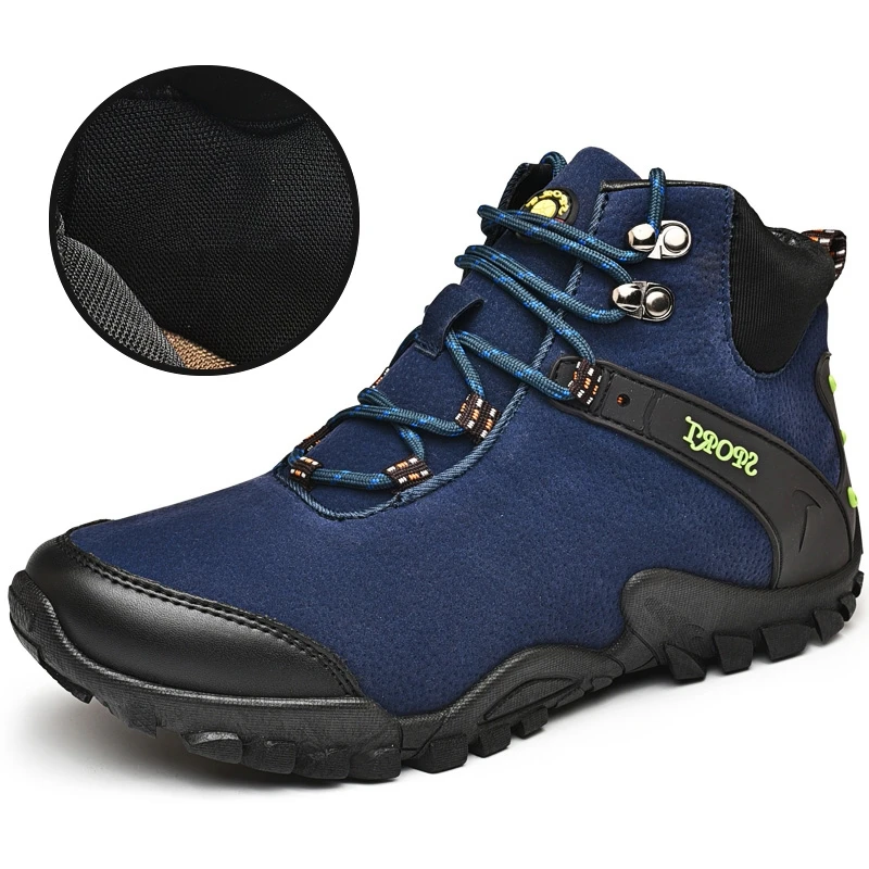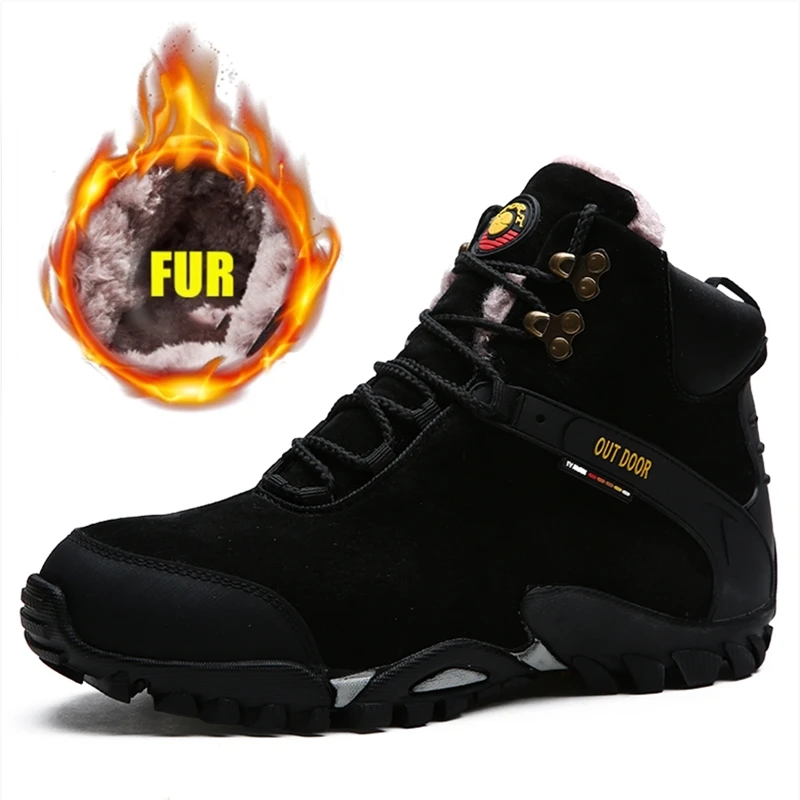 Высококачественная замшевая дышащая туристическая обувь ; Мужская обувь с высоким берцем на меху ; Теплые зимние плюшевые ботильоны ; Мужские уличные охотничьи треккинговые ботинки