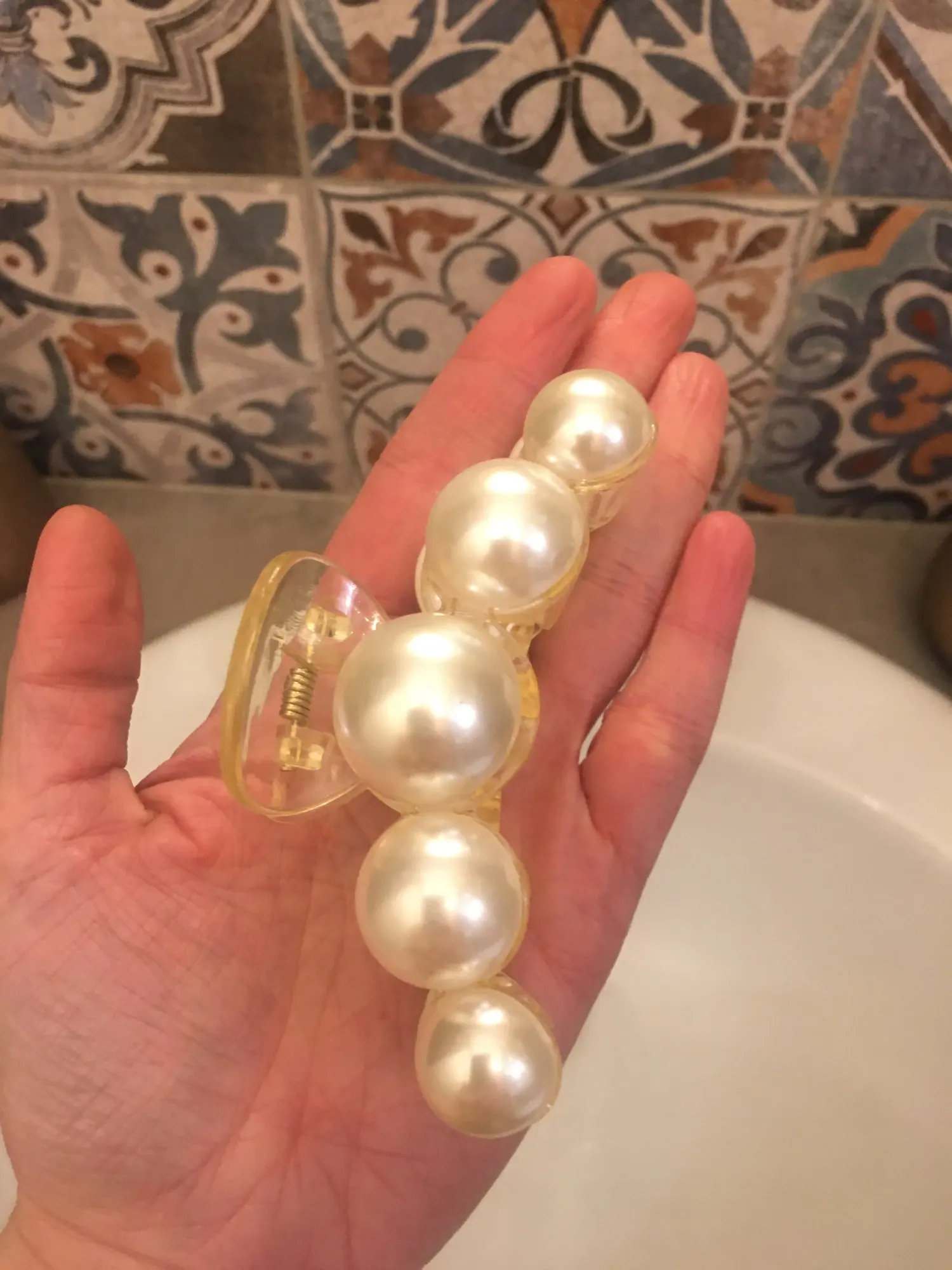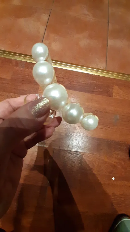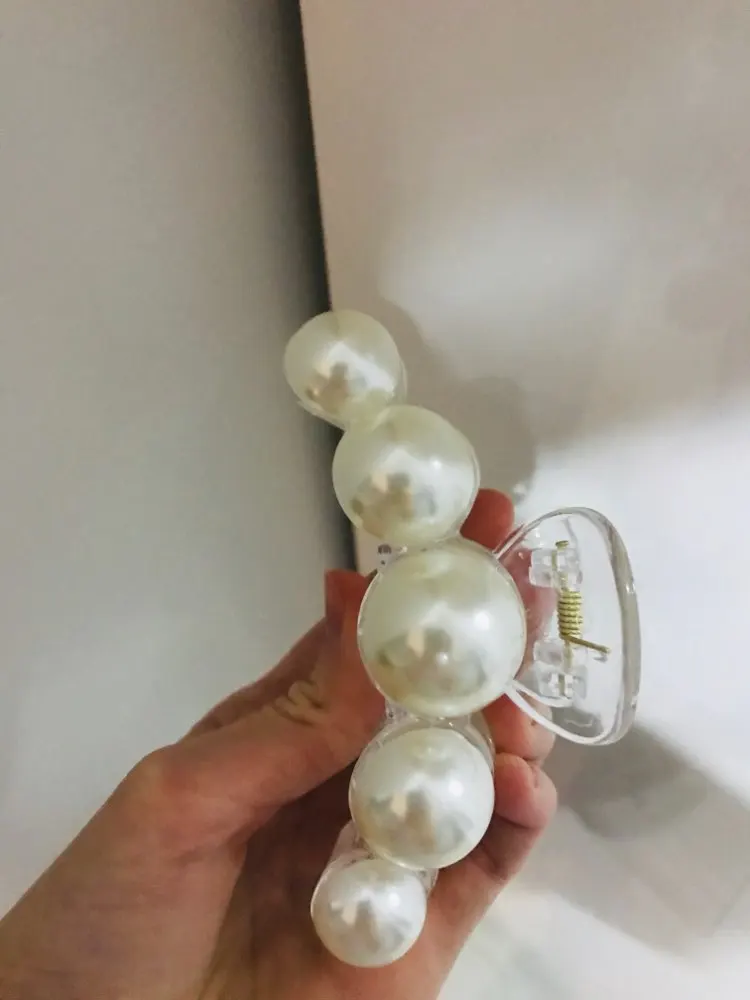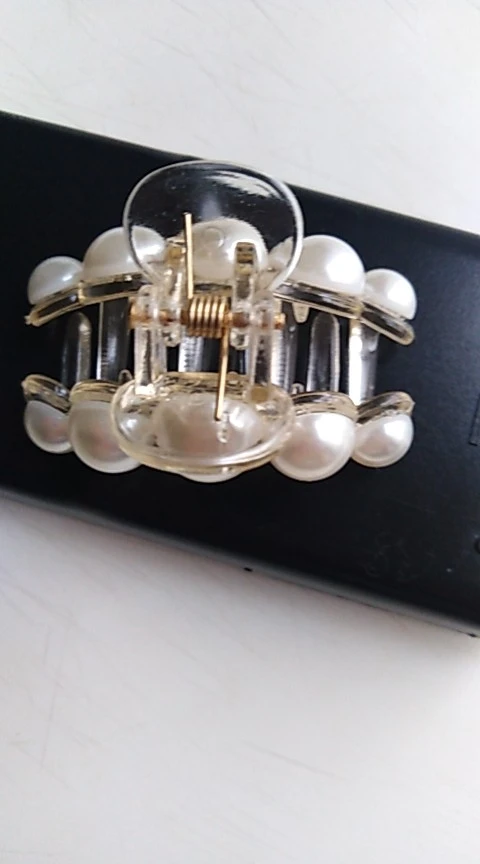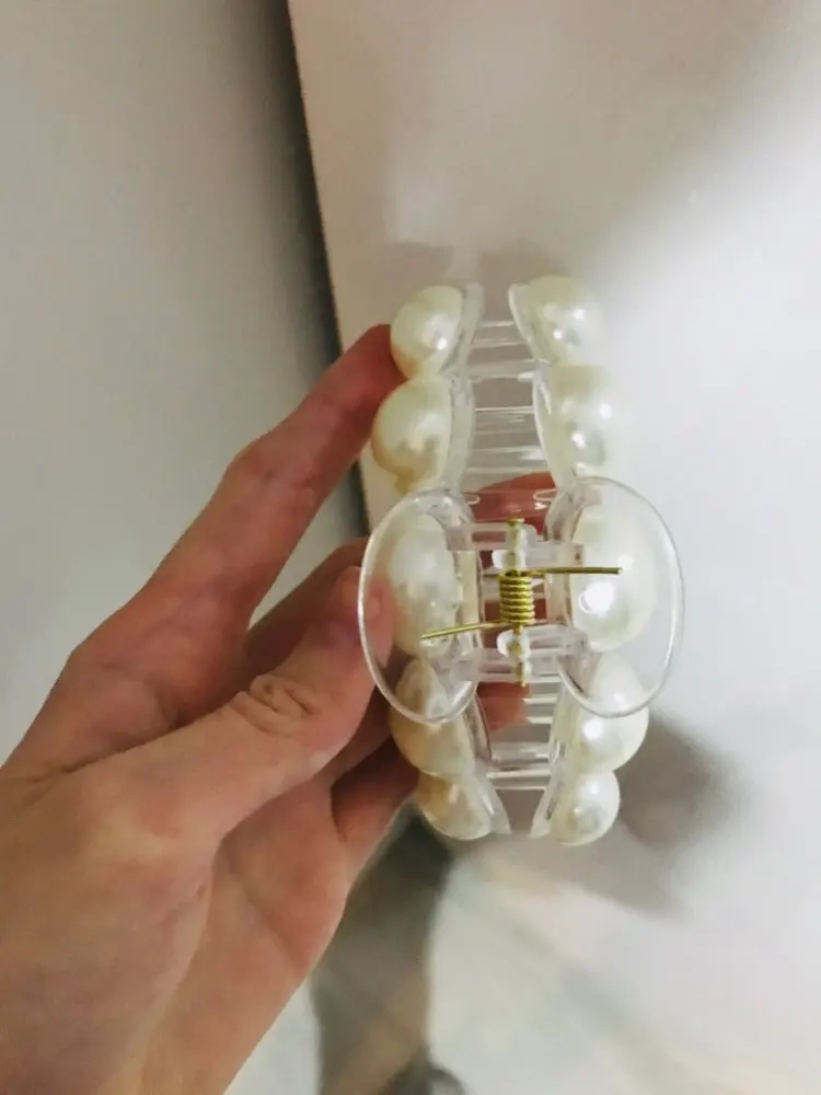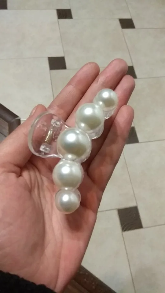 Заколка крепкая, тугая, большие жемчужинки.