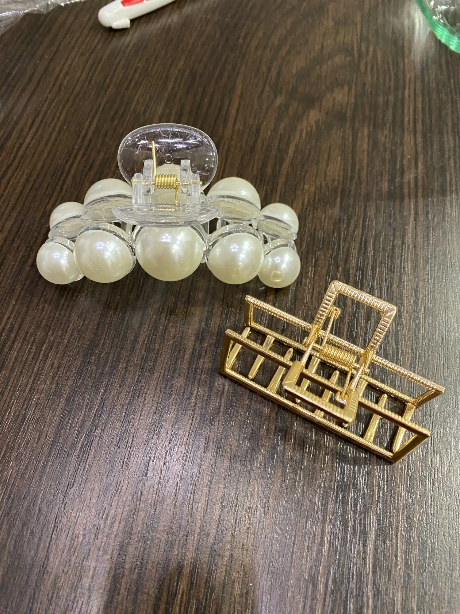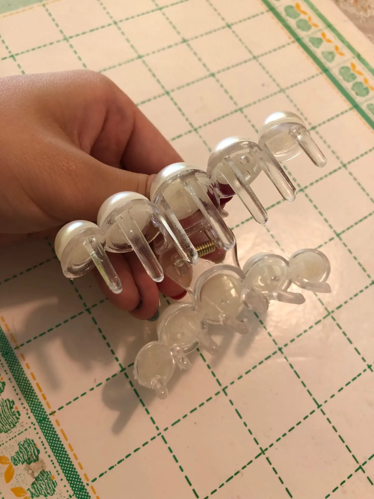 заколка с браком, одна бусина приклеена наполовину, но держится крепко