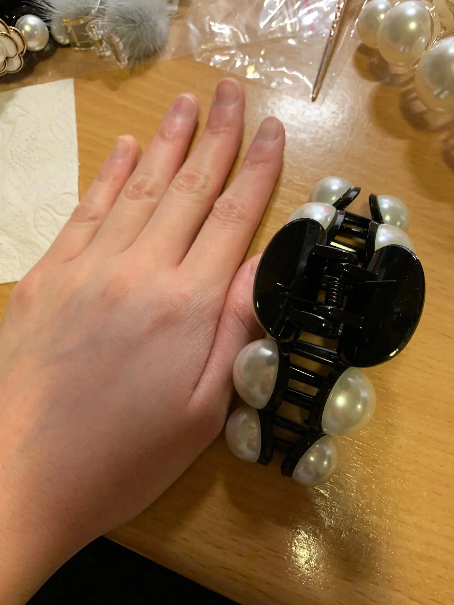 Заколка как на фото выглядит. Но вот доставка УЖАС , без отслеживания, без опозновательных знаков. Посылку на почте еле нашли. Заказала в ноябре, получила в конце февраля