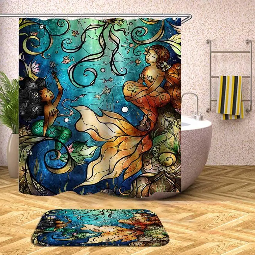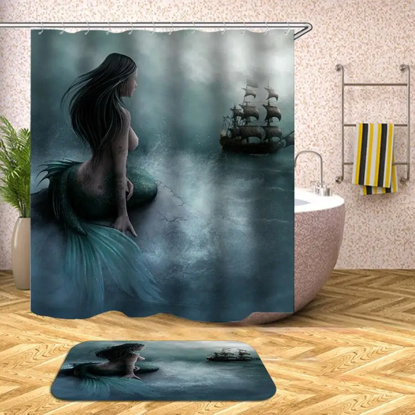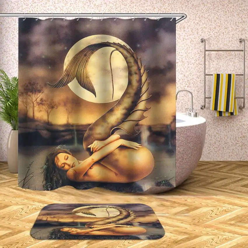 Водонепроницаемая занавеска для душа русалка, 12 шт. крючков