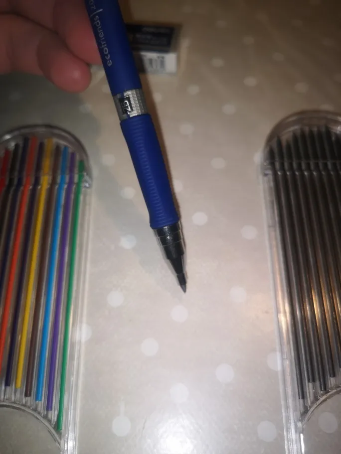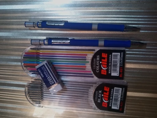 В целом хороший продукт. Функциональный и хорошо сделанный. Также оснащен наконечниками темпера. И шахта в Графите, что шахты красочные отлично подходят для дизайна и черновик, как относительно жесткий. Рекомендовано.
