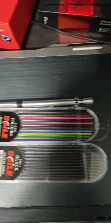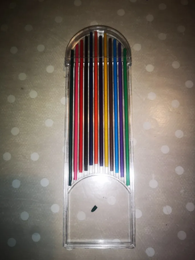 Обе коробки с грифелями оказались с поломанными полукруглыми крышками. При этом все грифели поломаны в глубине коробок. И поскольку цанговый механизм требует некоторую длину грифеля - воспользоваться обломками не получится :(