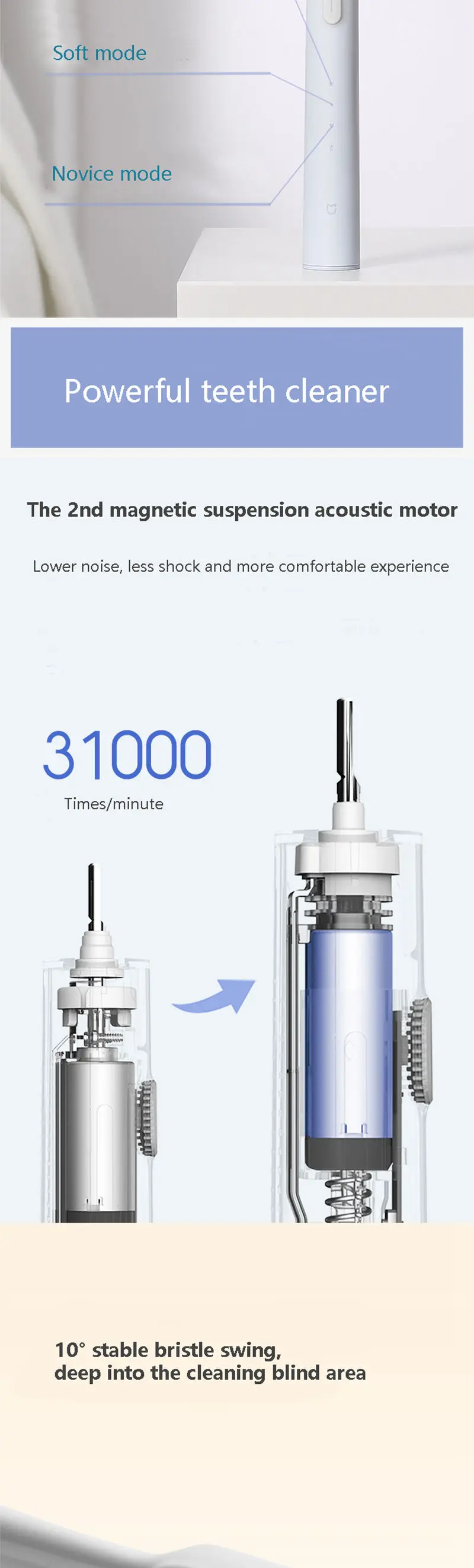 Детали Xiaomi умная звуковая электрическая зубная щетка
