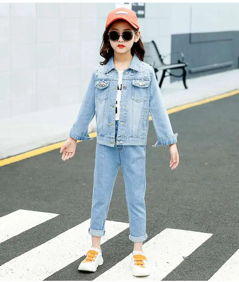 Детская куртка, пальто Джинсовая куртка для девочек детская одежда на весну и осень 2020 модная верхняя одежда для детей среднего и старшего возраста