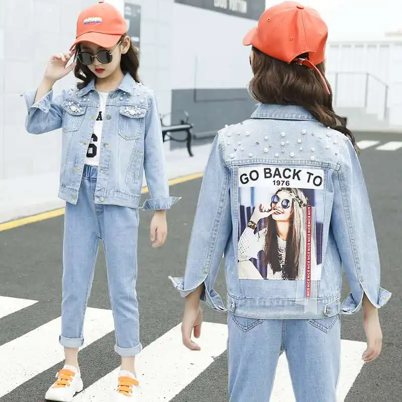 Осенняя джинсовая куртка для девочек, пальто для девочек, детская в...