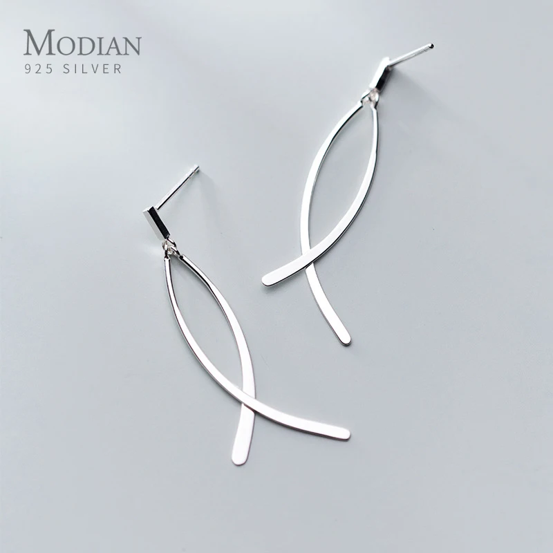 Женские серьги-подвески Modian, классические геометрические серьги-подвески в форме линии Креста, аутентичное Стерлинговое Серебро, Подарочная бижутерия, 925