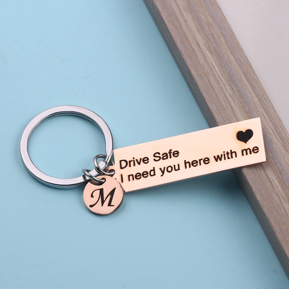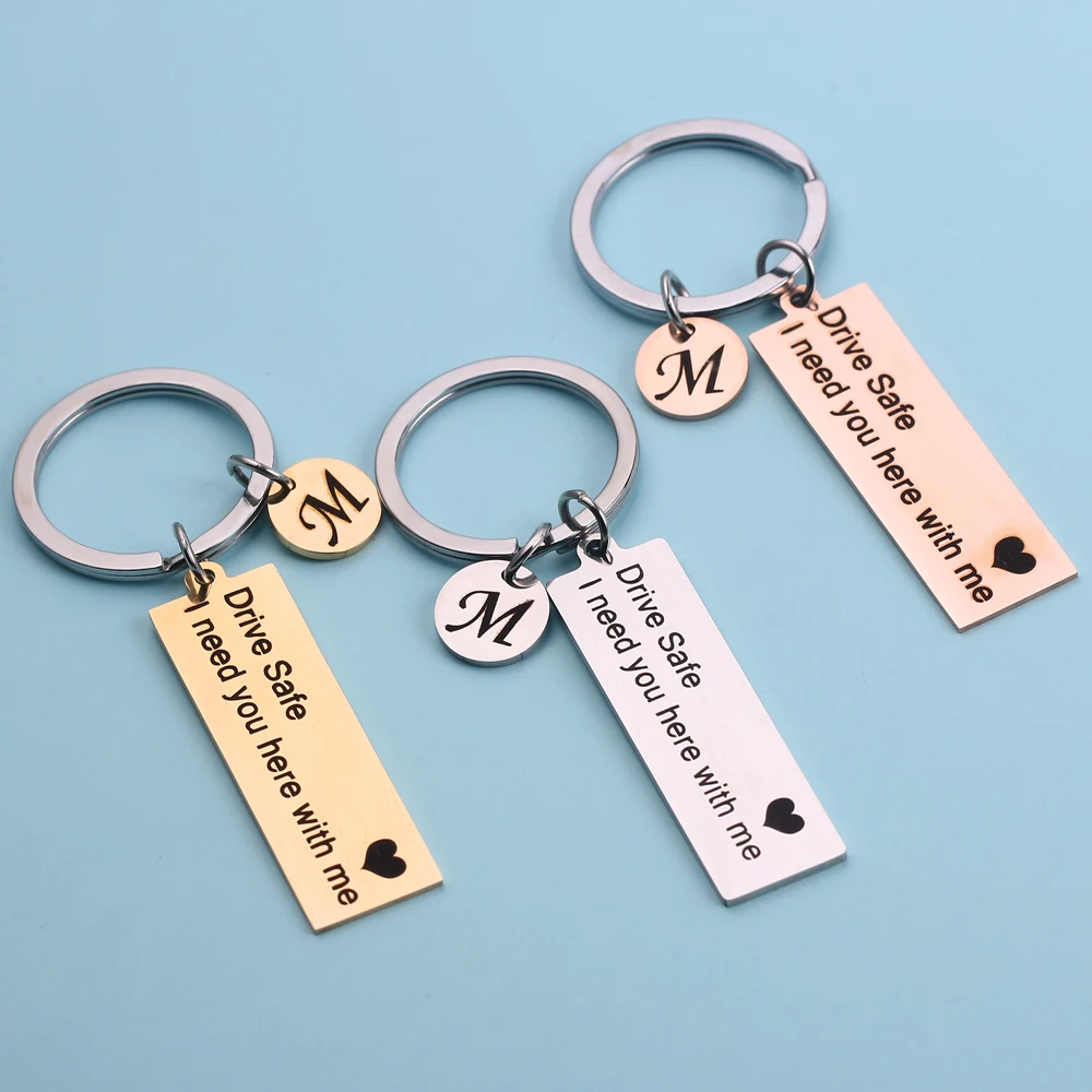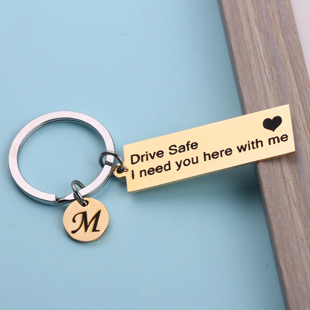 Брелок для ключей автомобиля из нержавеющей стали с гравировкой, безопасный привод, я хочу, чтобы вы были здесь со мной, бриллианты 26 дюймов, брелок с буквой, мужские подарки