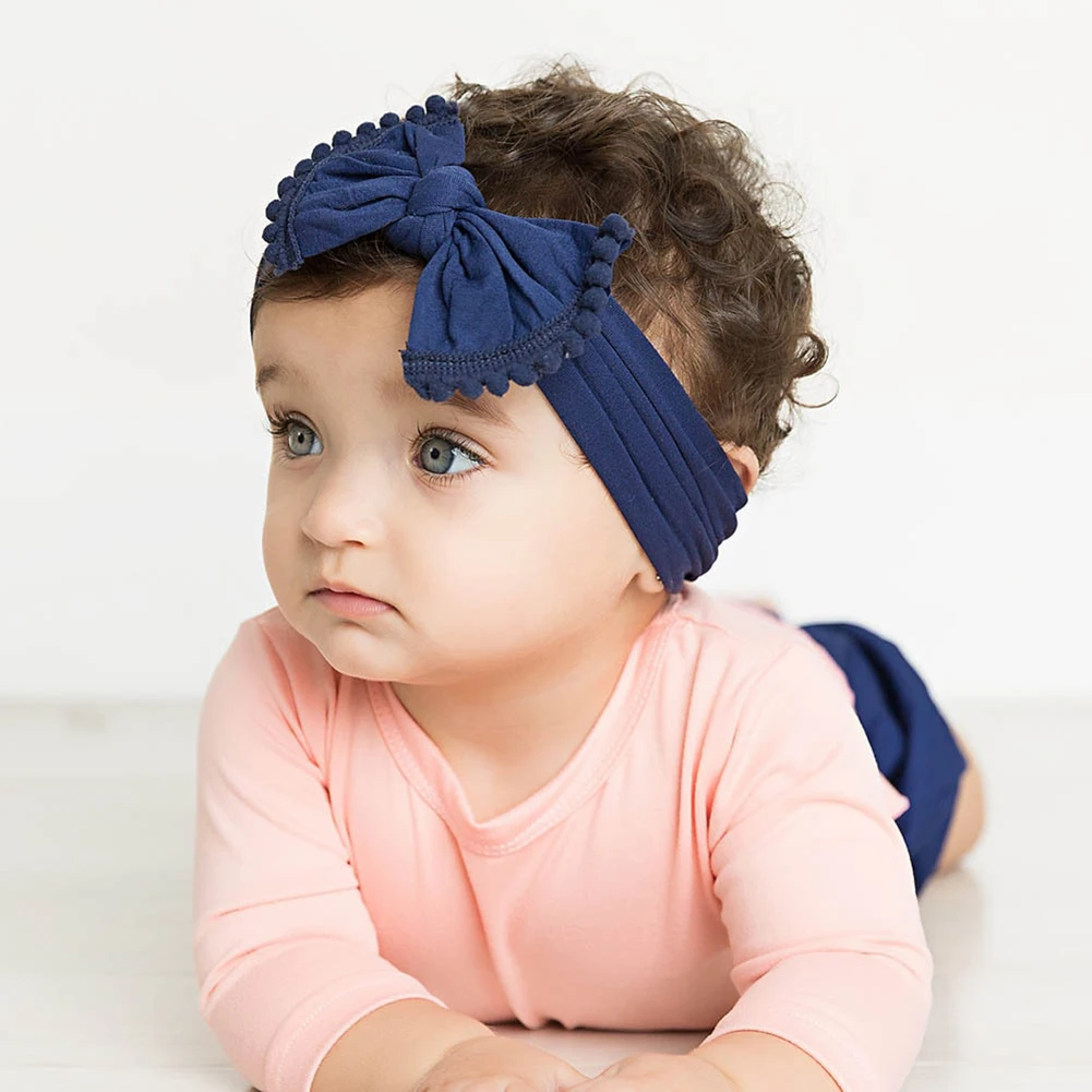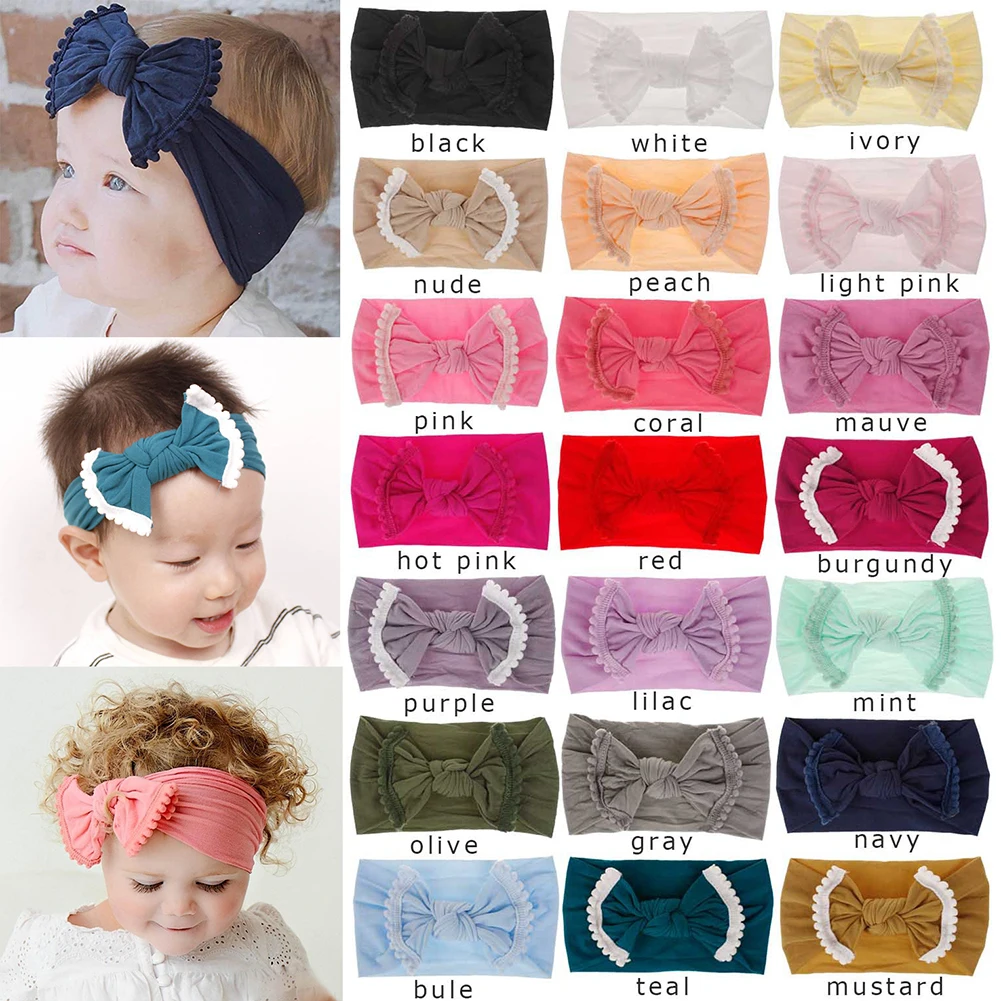 С бантом для маленькой девочки, Детская повязка на голову из мягкого нейлона и шифона со вставками в полоску, эластичная чалма резинки для волос для девочек; Эластичная повязка для головы однотонные Женские аксессуары для волос с бантом; Бант для волос; Обёрточная бумага