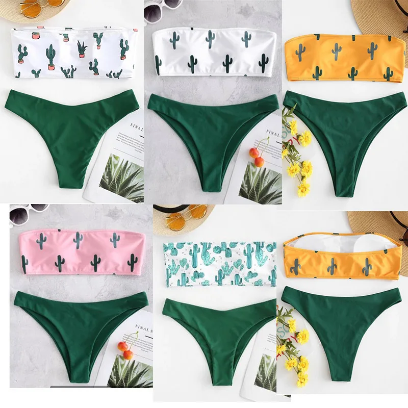 Женский комплект бикини с принтом авокадо, Мягкий купальник без бретелек, бандо, купальник, стринги, бикини с низкой талией, 2020