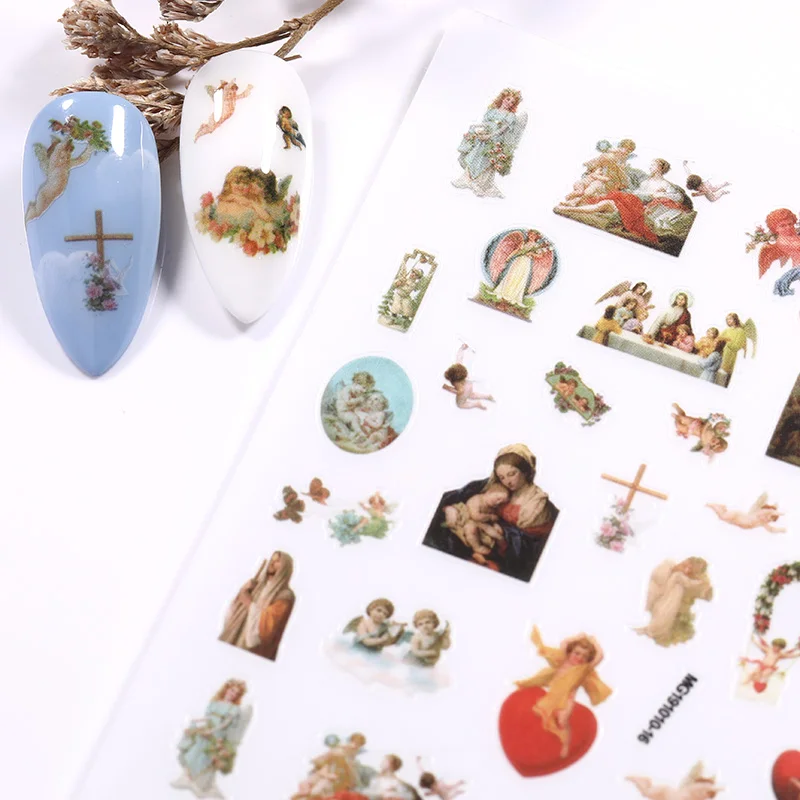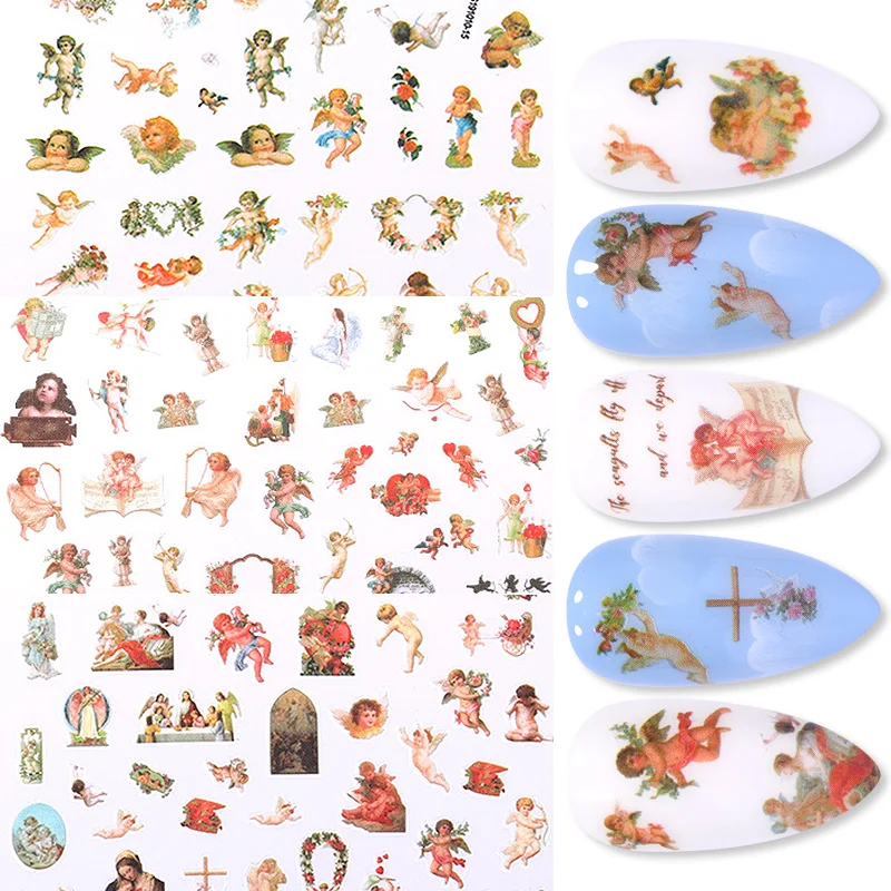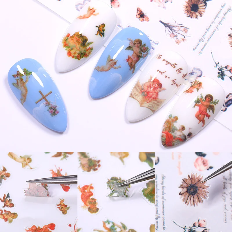 Наклейка для ногтей, 1 лист, с 3d-рисунком ангела, маргаритки, цветные цветы и листья, переводные наклейки для ногтей, для самостоятельного украшения ногтей