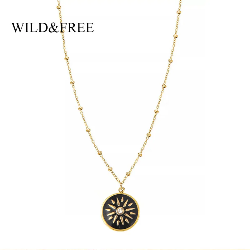 Женское Ожерелье из нержавеющей стали Wild Free, Черное круглое ожерелье-цепочка с бусинами, Ювелирное Украшение в богемном стиле, вечерние