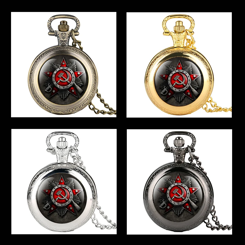Антикварный чехол для часов с эмблемой Российской Федерации СССР Советский серповидный Молот Ретро СССР герб России коммунизм карманные часы на цепочке