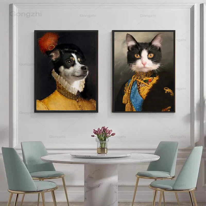 Плакаты и принты в винтажном стиле, картина с рисунком животных, с изображением оленя, кошки, собаки, для декора гостиной