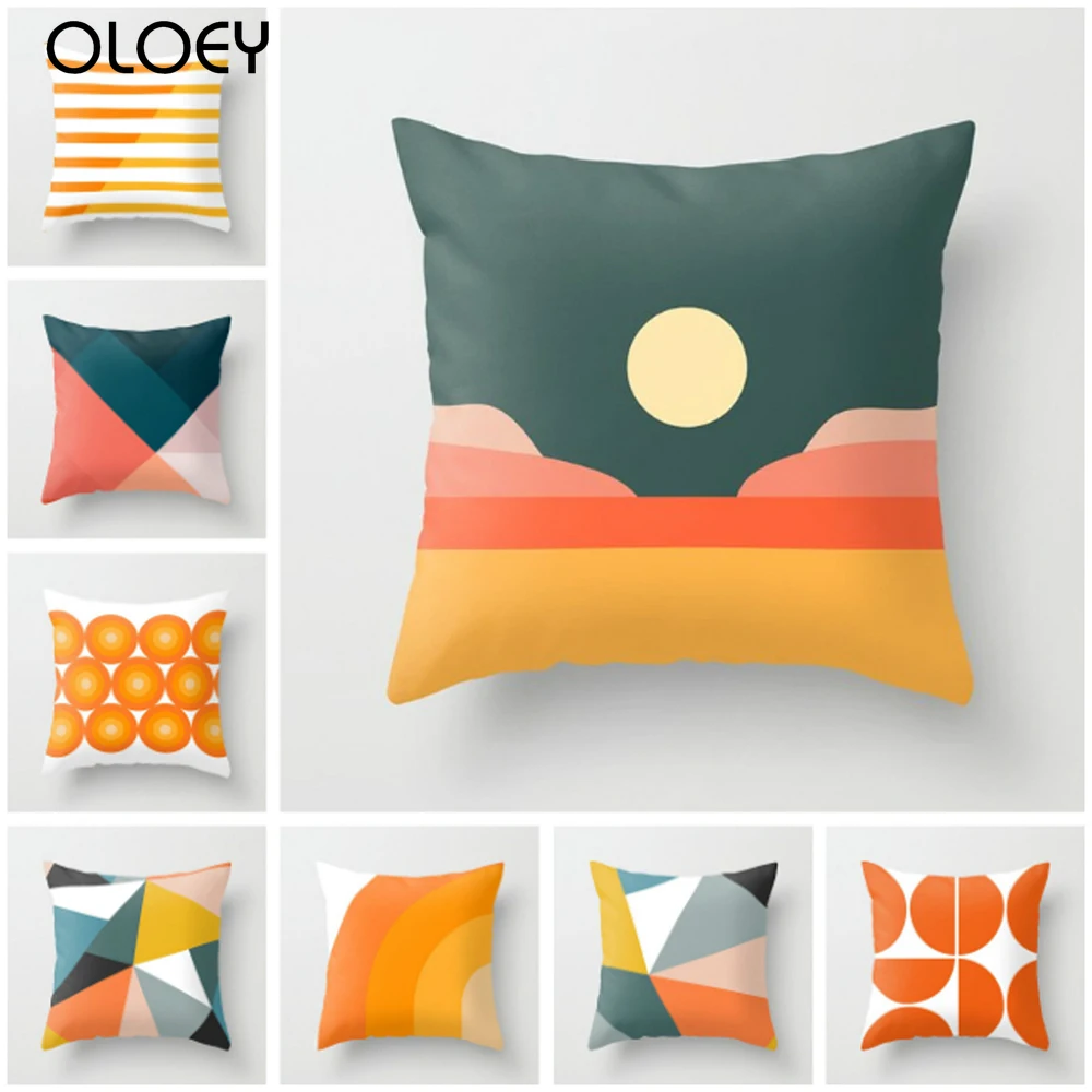 Наволочка из полиэстера в стиле ретро, с геометрическим рисунком середины века, оранжевого цвета, декоративная для домашнего дивана, кресла