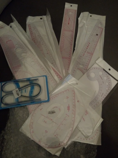 В Тюмень заказ шел больше месяца, отслеживался. Очень тонкий и очень гибкий пластик, хотя может быть это окажется очень удобно в работе. Пока не поняла... А вот гибкая линейка оказалась 30см, а не 50 , как заявлено на одной из картинок. Да и даже выглядит на много короче, чем на изображении из моего сета (в такую "змейку" ее не свернешь). Немного огорчилась...