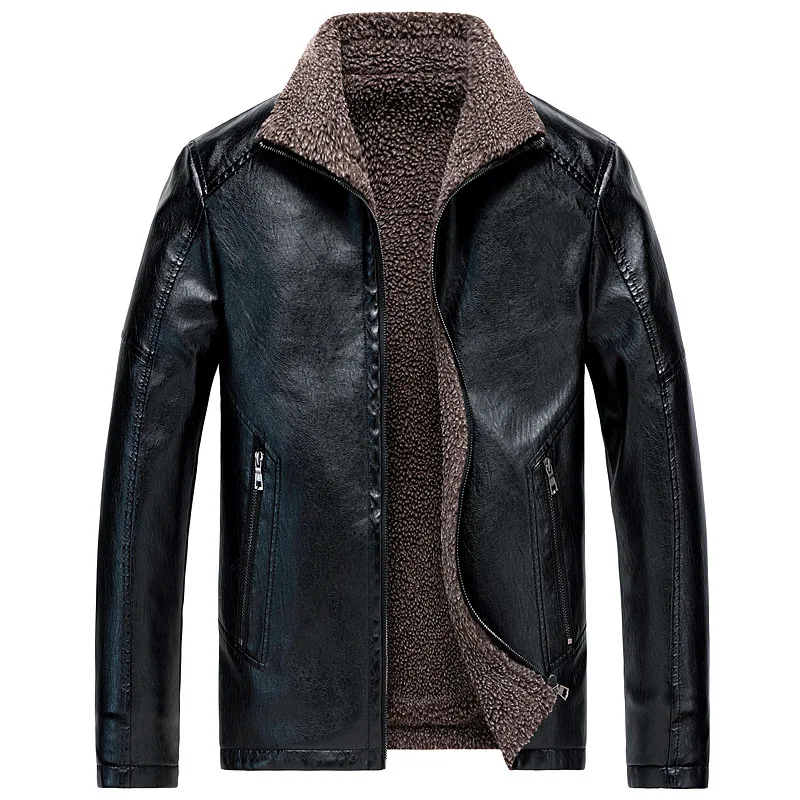 Мужские кожаные куртки, Зимние флисовые пальто из искусственной кож...