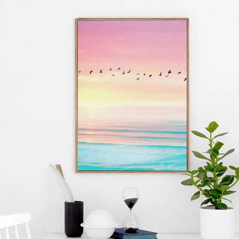 Настенная картина розового моря, фламинго, дюна, рисовый цветок, ци...