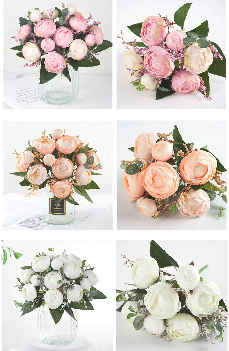 Искусственные цветы для украшения, розы, пионы, шелковые маленькие ...