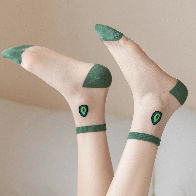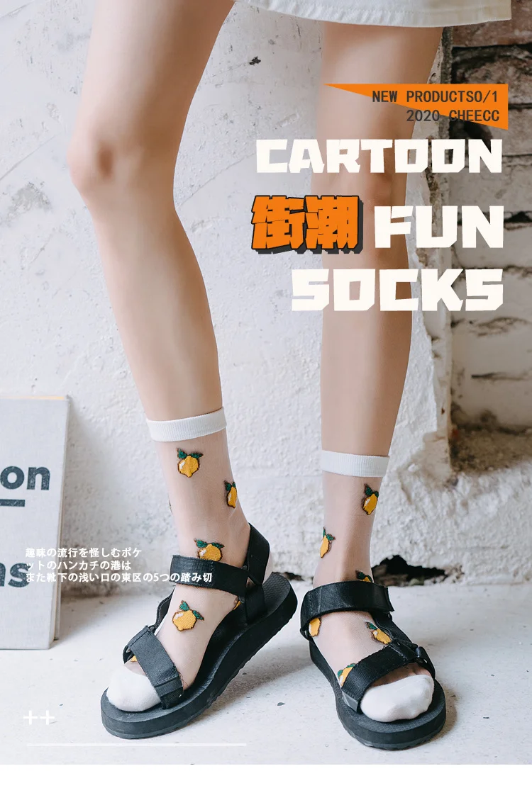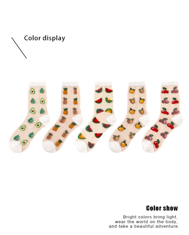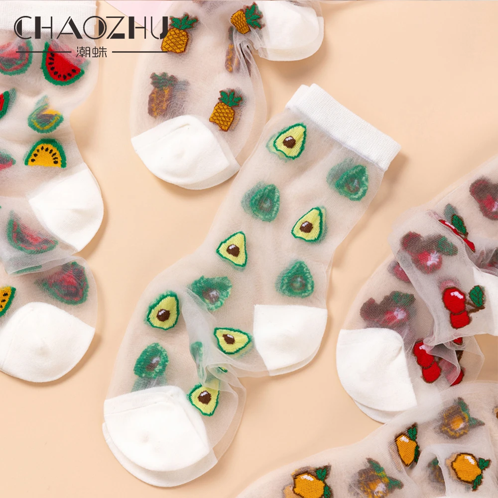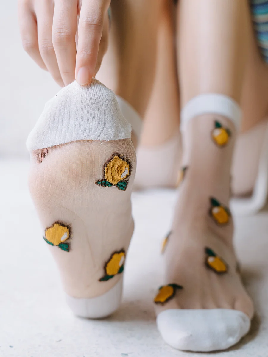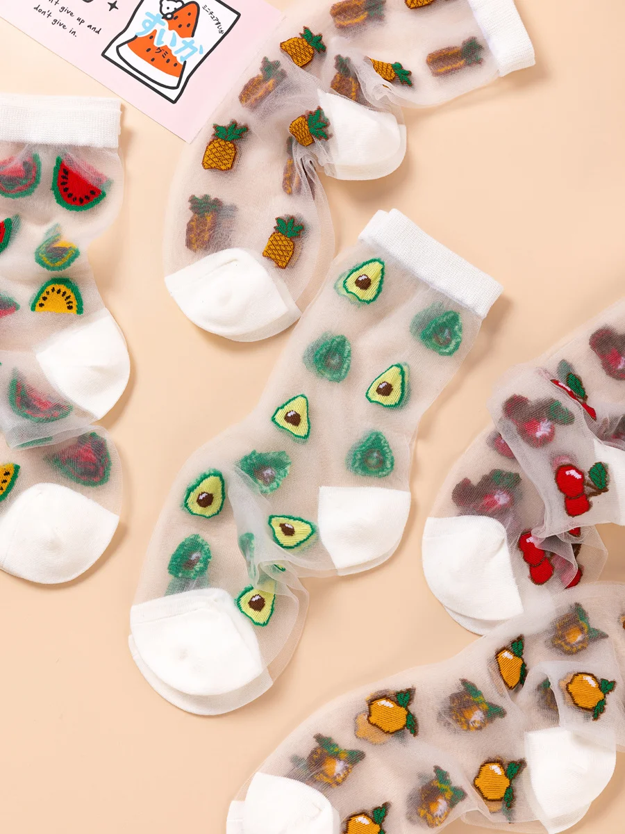 Носки женские, жаккардовые, с изображением фруктов, для лета и осени, ананас черешня