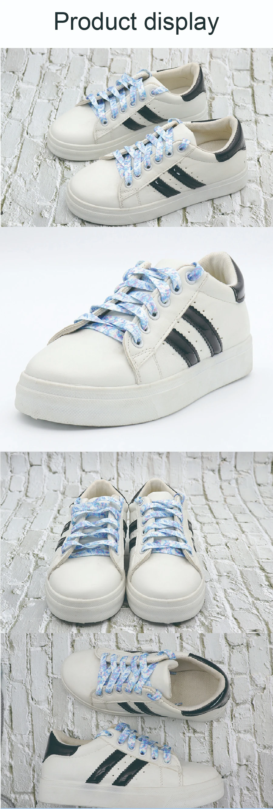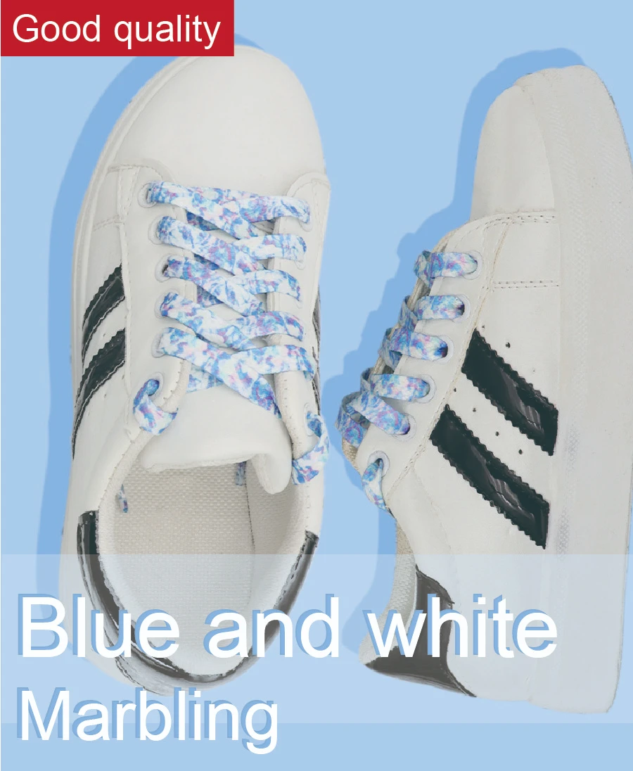 Weiou модные милые шнурки 0,8 см плоский Тип печатных белого и голубого цвета с мраморным узором шнурки для женской обуви Поддержка таможенных
