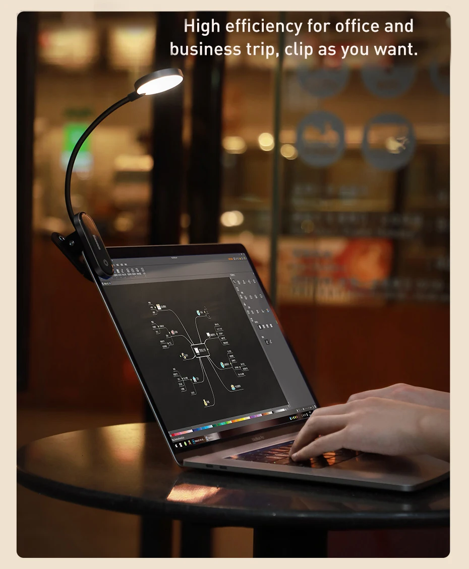 Baseus Светодиодная настольная с зажимом лампа плавная регулировка яркости Беспроводная настольная лампа сенсорный USB Перезаряжаемый светильник для чтения светодиодный ночсветильник лампа для ноутбука