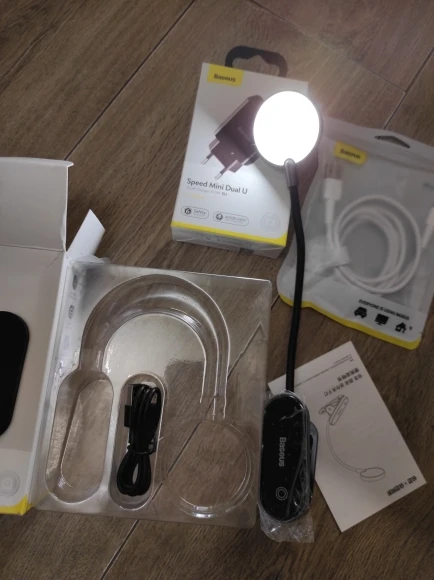 Отличного качества лампа. Все очень качественно и аккуратно от упаковки до самой лампы. Хорошо Регулируется яркость света на три тональности. Ночью очень мягко светит свет, не пересвечивая страницу, можно регулировать угол света. Клипса держит лампу крепко, но не оставляет следов от зажима, что важно. В подарок положили дополнительный шнур универсальный для зарядки. Доставка быстрая около 3х недель в Беларусь