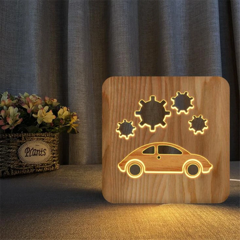 3D светодиодный светильник из дерева с питанием от USB, теплый свет...