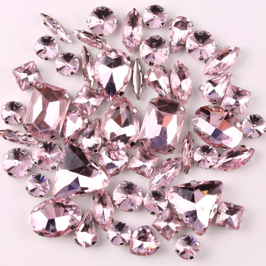 Набор серебряных когтей, 50 шт.пакет, смешанные формы, розовое стекло, кристаллы, стразы, свадебные модельные туфли, сумка, сделай сам, отделка