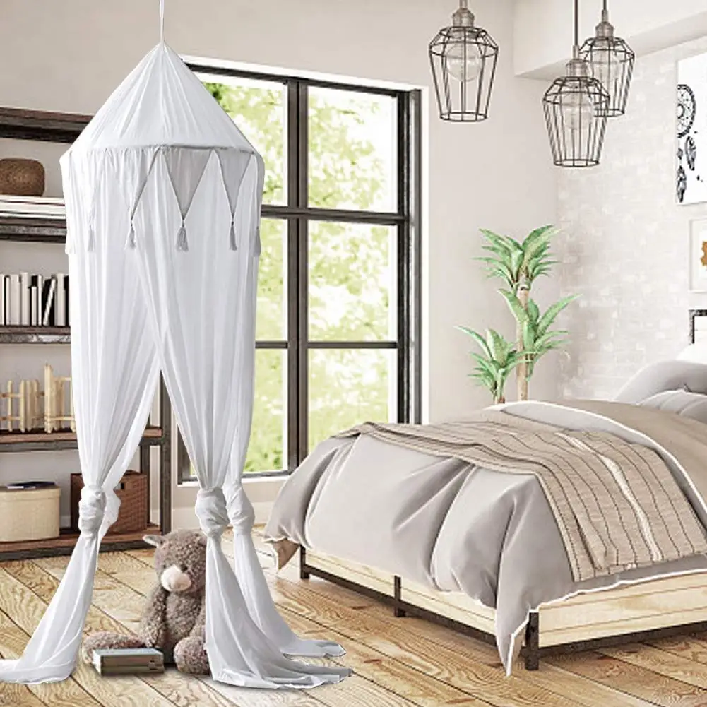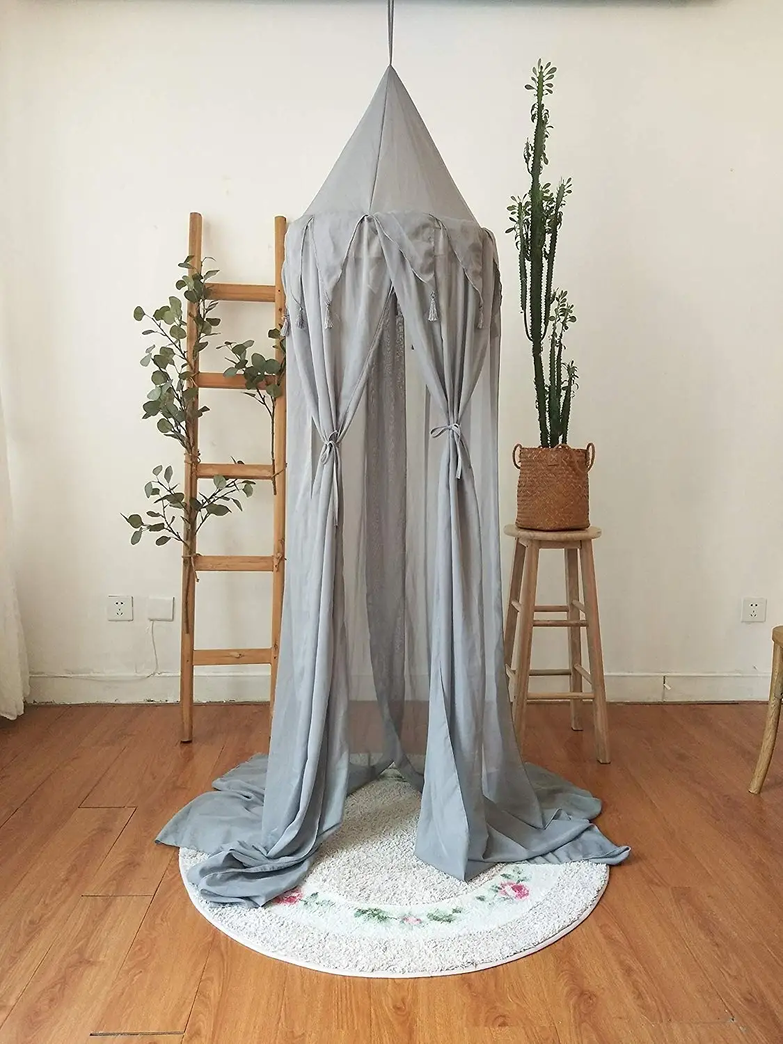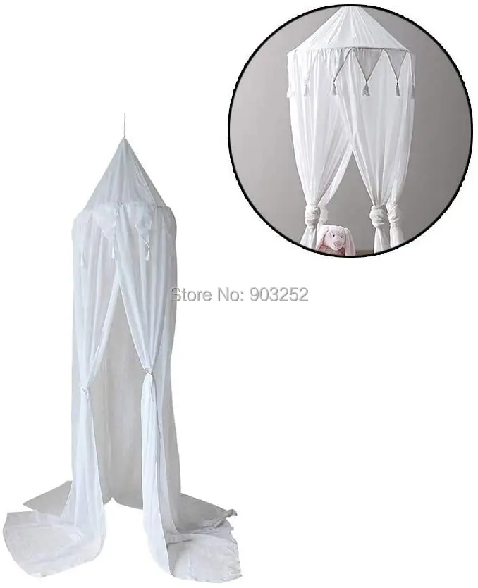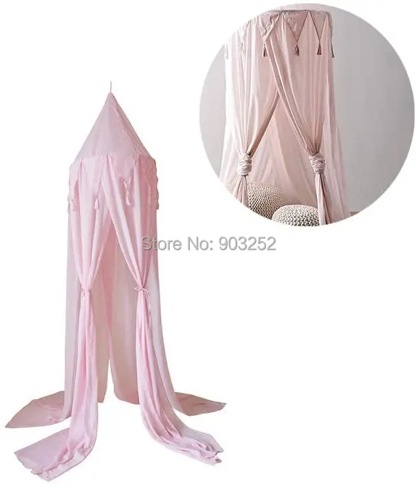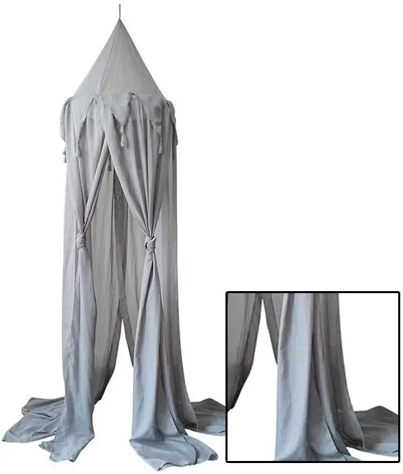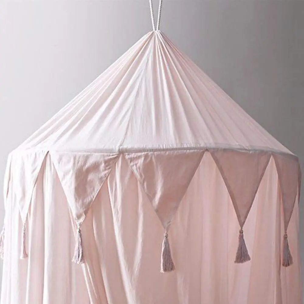 Однотонный навес для детской кровати с треугольными кисточками и кр...