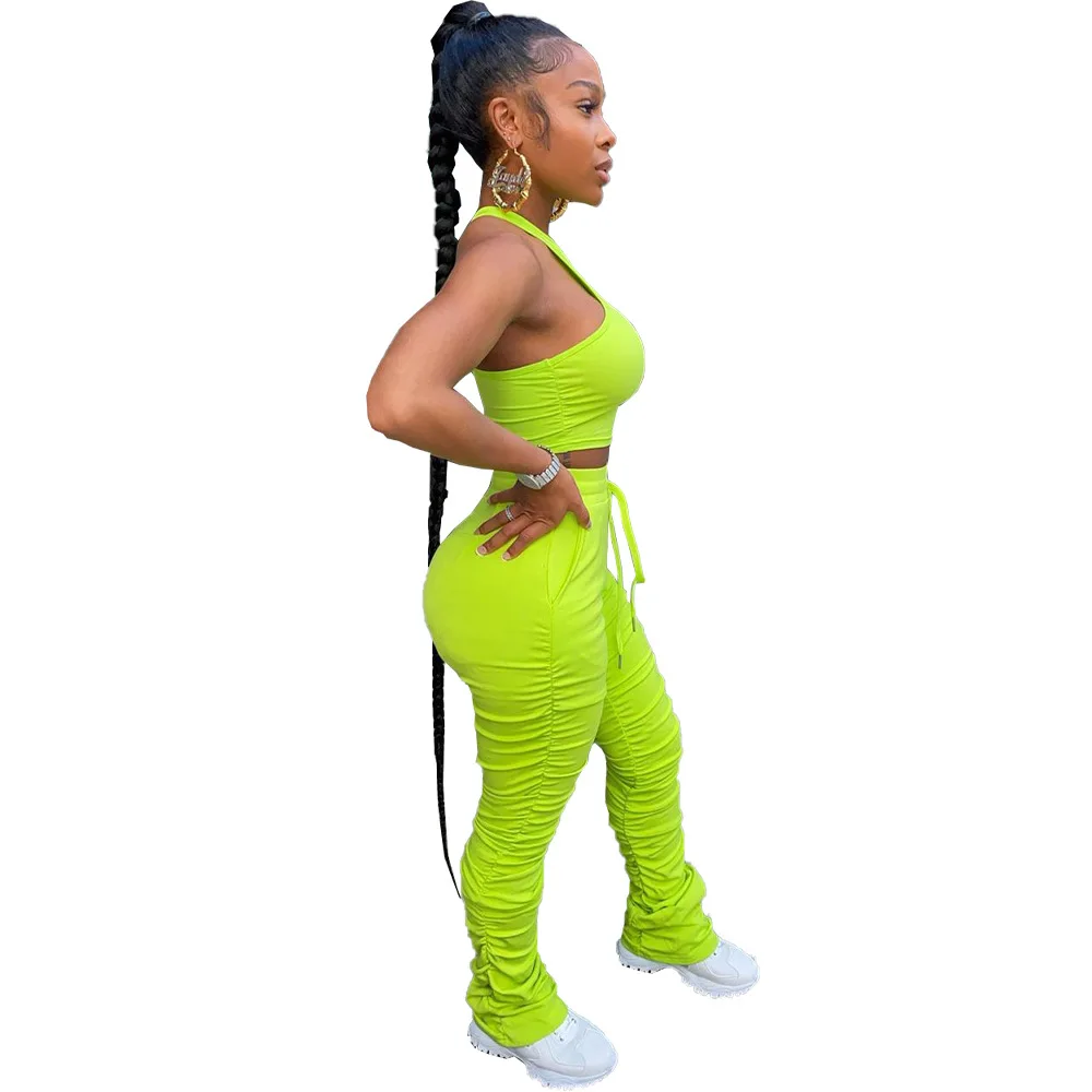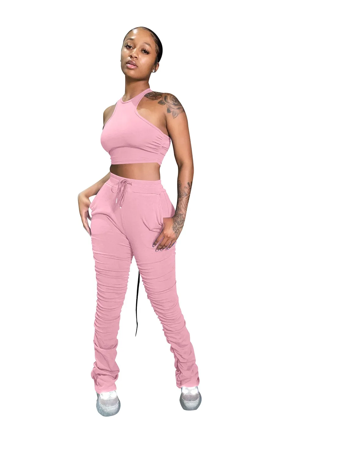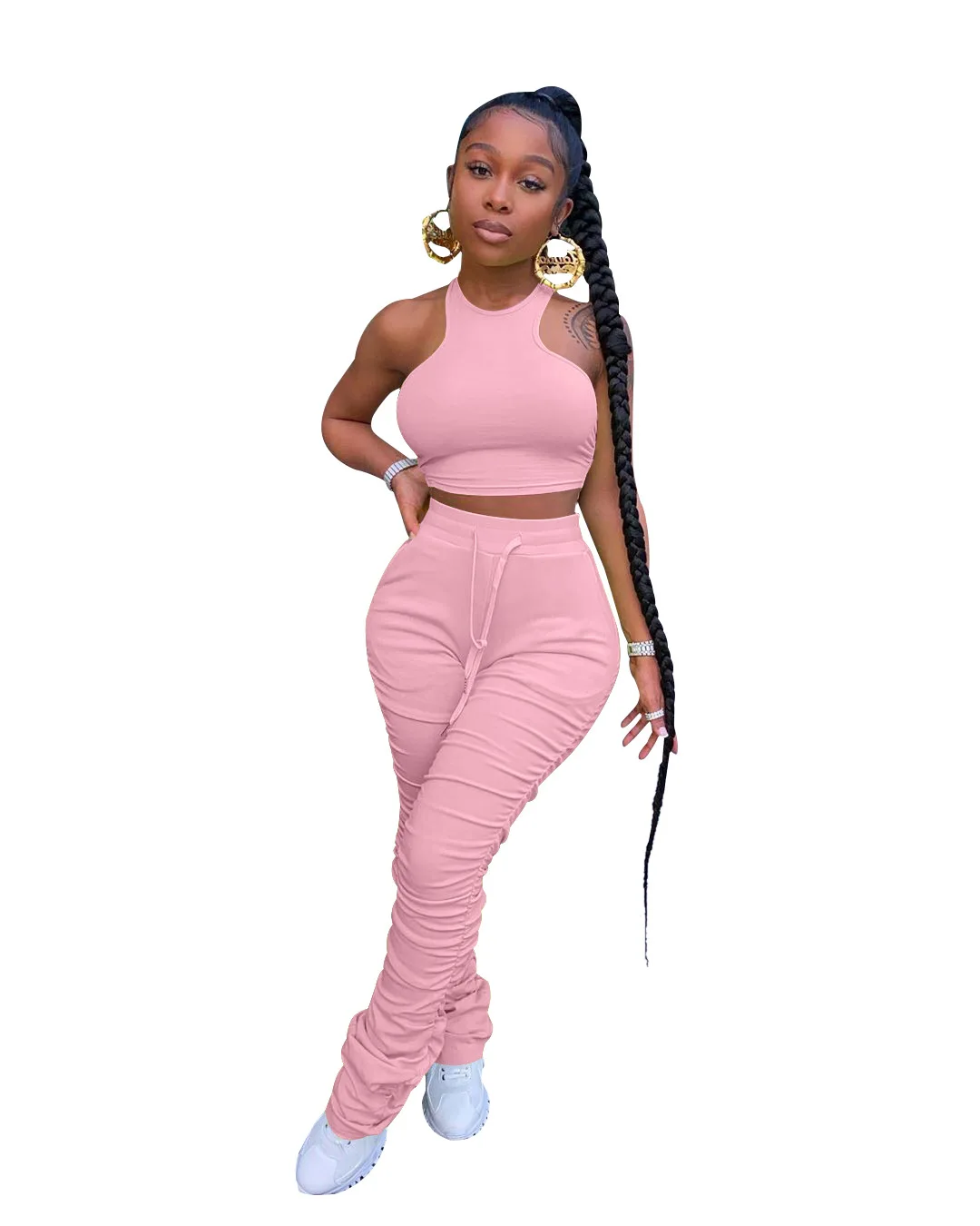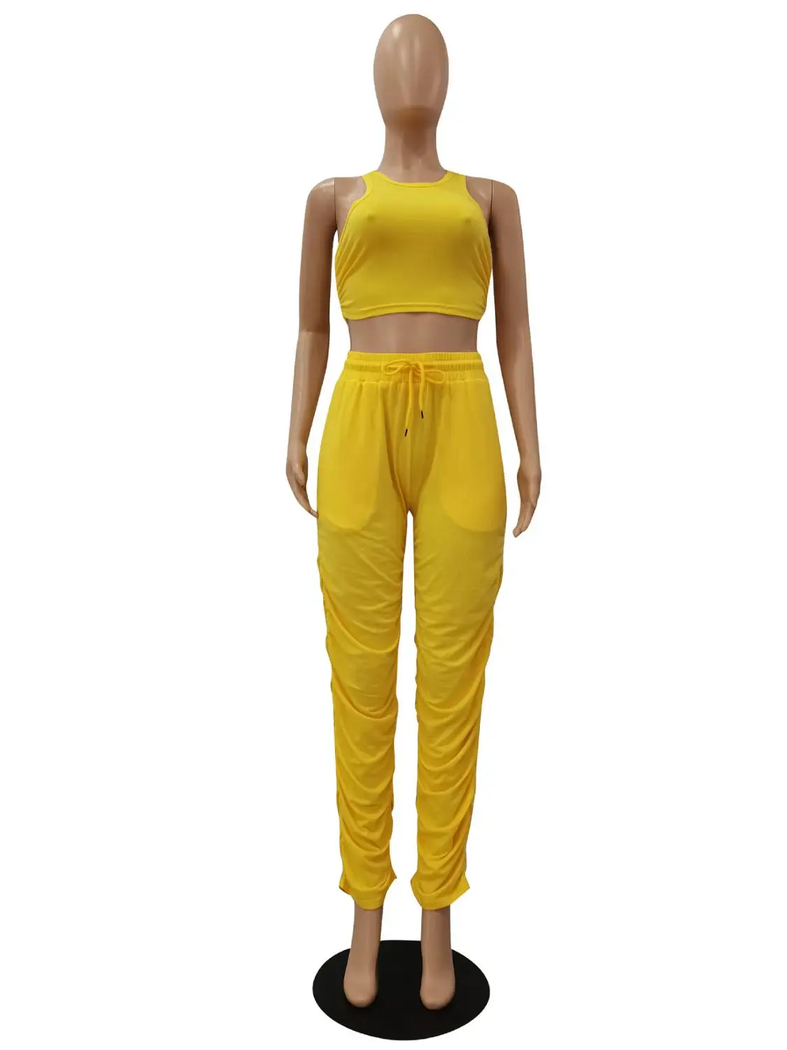 Женский спортивный костюм из двух предметов, облегающие леггинсы для фитнеса, укороченный топ без рукавов и спортивные штаны, одежда для отдыха на лето