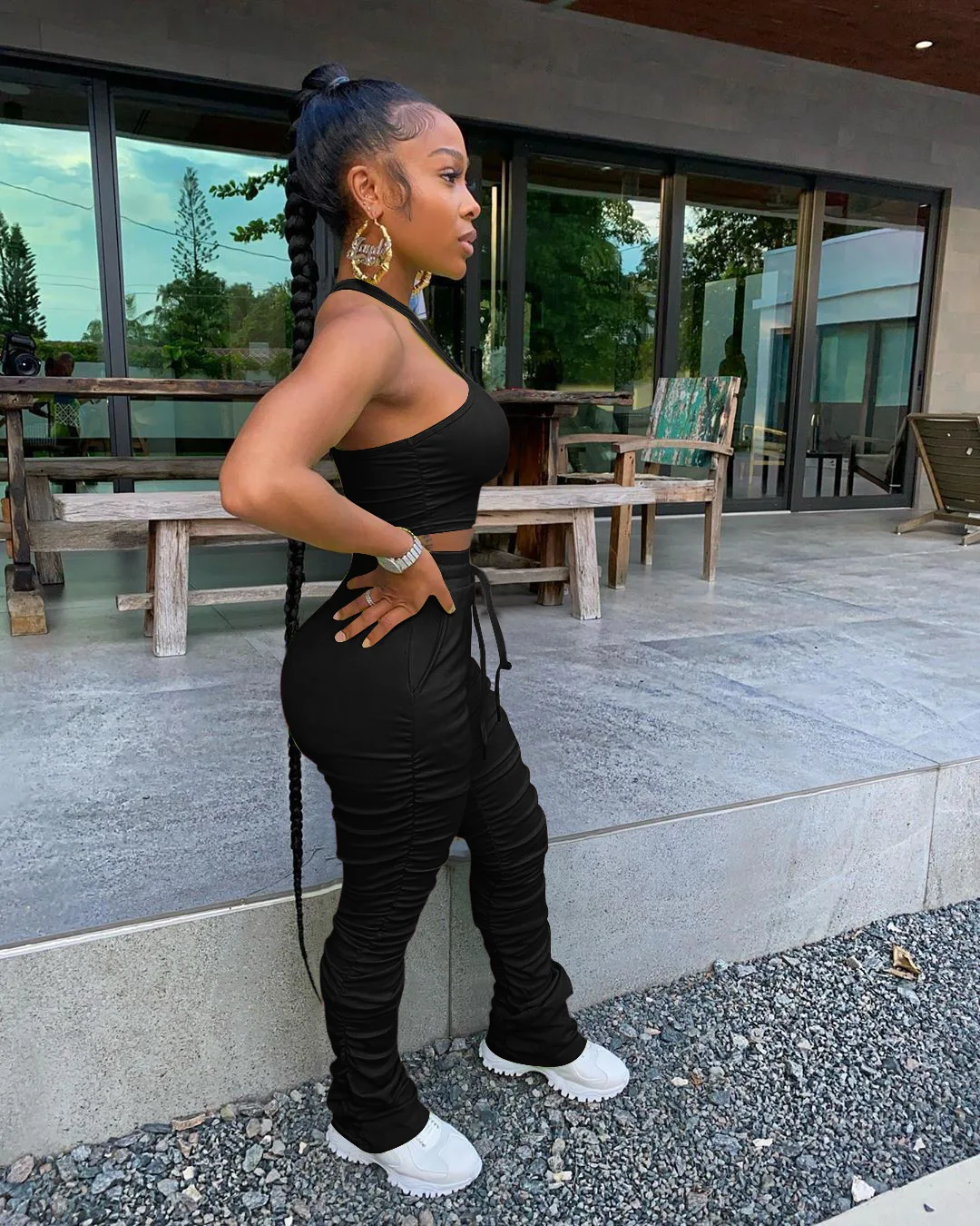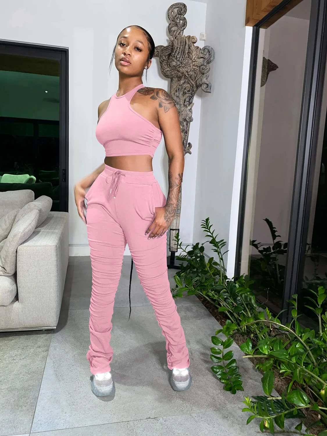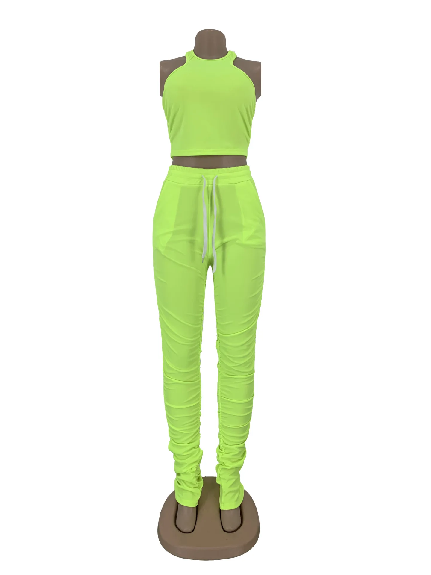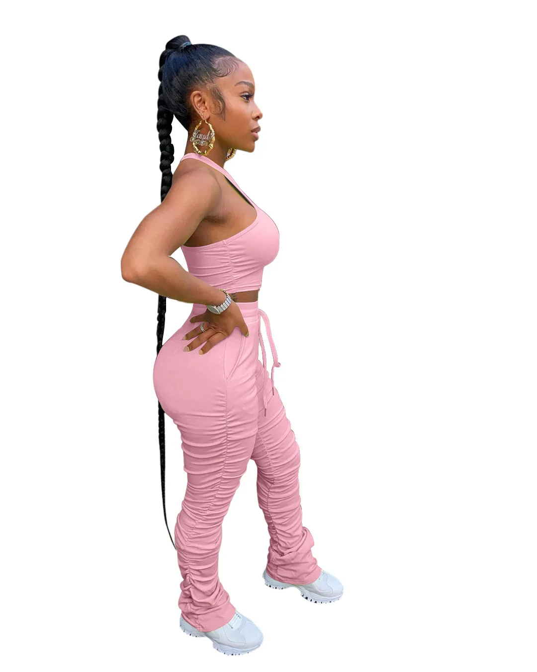Женский спортивный костюм из двух предметов, облегающие леггинсы для фитнеса, укороченный топ без рукавов и спортивные штаны, одежда для отдыха на лето