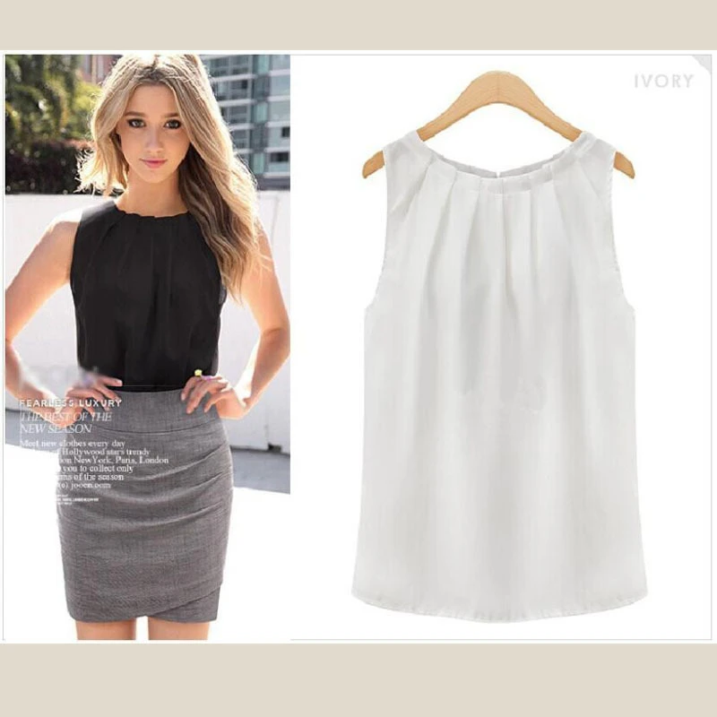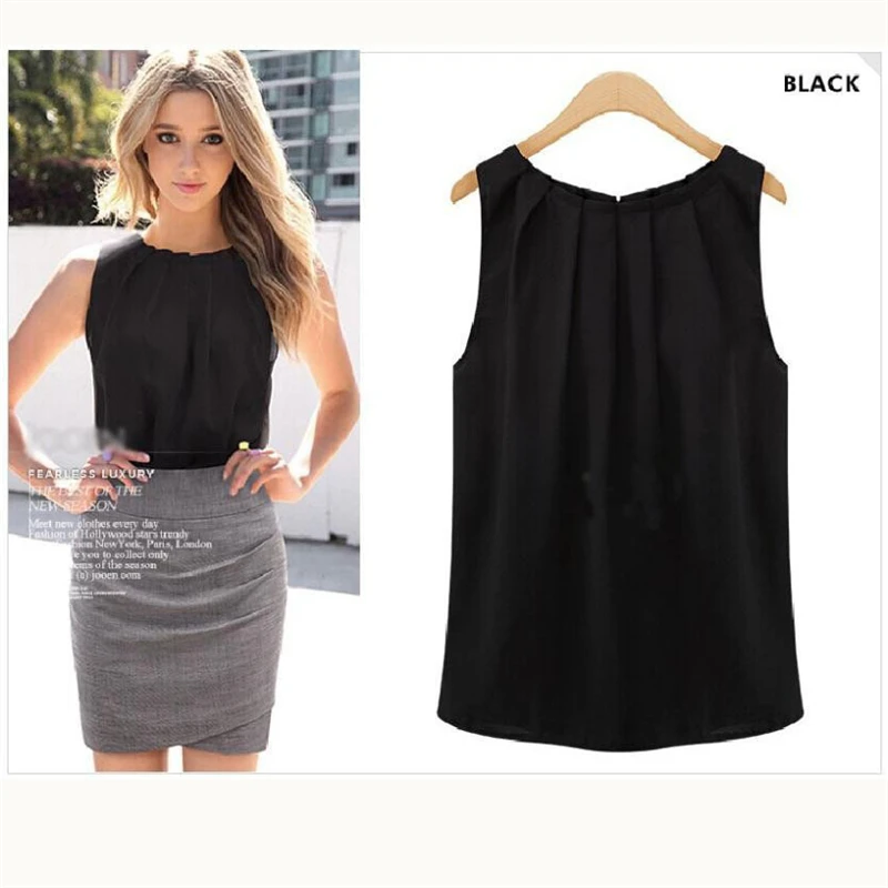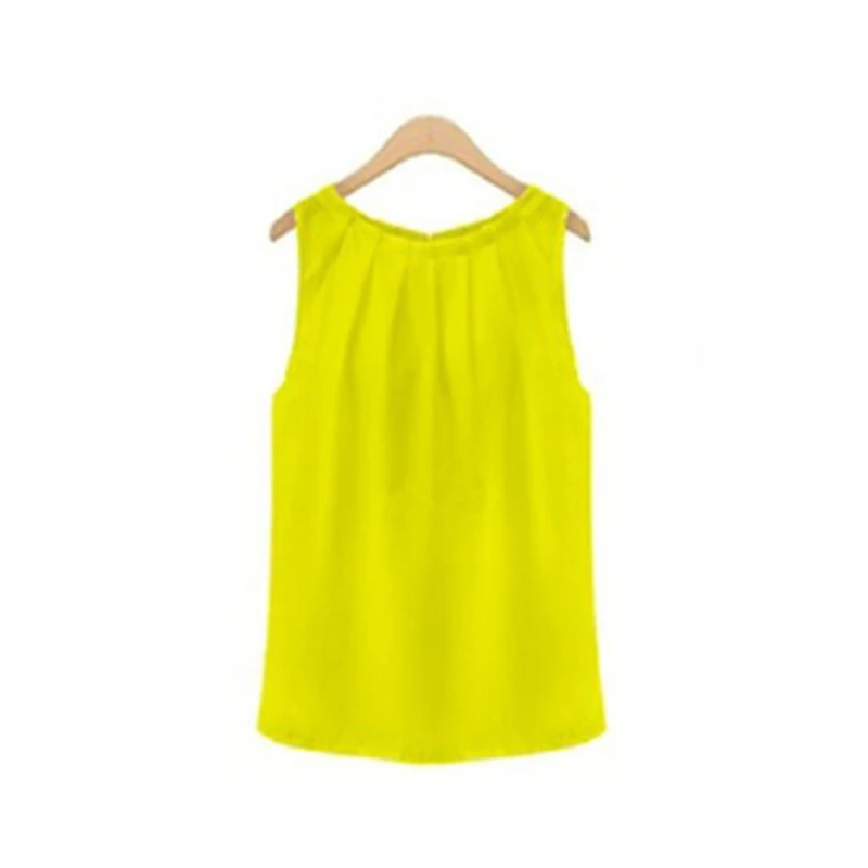 Европейский и американский женский летний пуловер большого размера с круглым вырезом шифоновая рубашка без рукавов однотонная