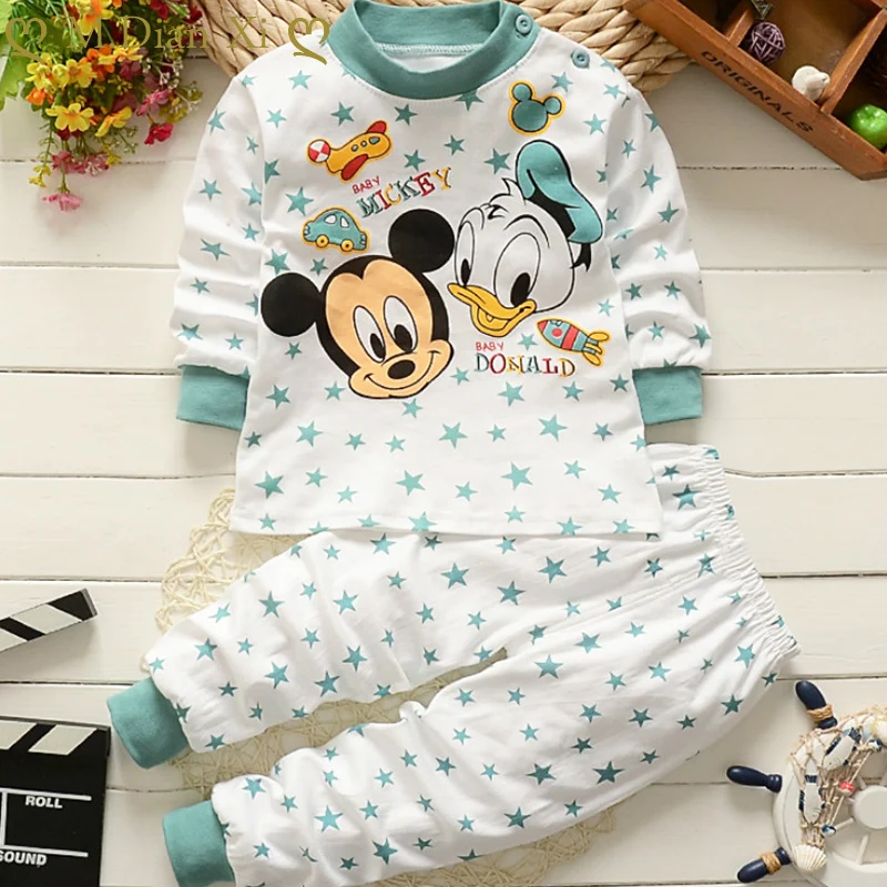 Одежда для маленьких мальчиков от 0 до 2 лет, зимняя одежда из набор "Минни" хлопка для новорожденных мальчиков и девочек, одежда для маленьких мальчиков и девочек, 2 шт., детские пижамы, комплекты детской одежды унисекс