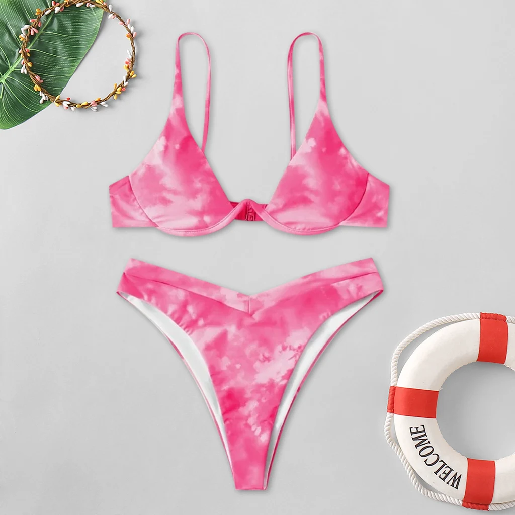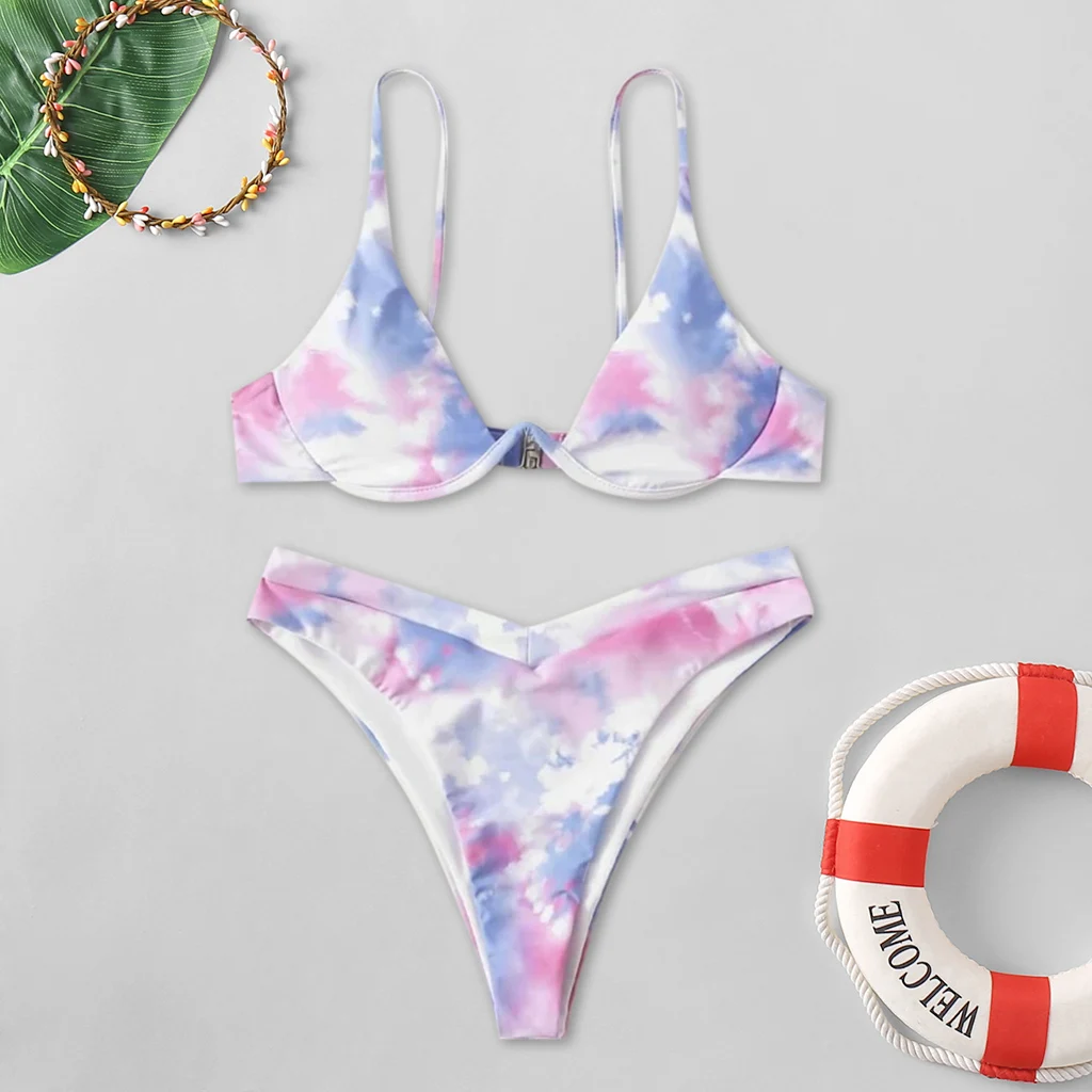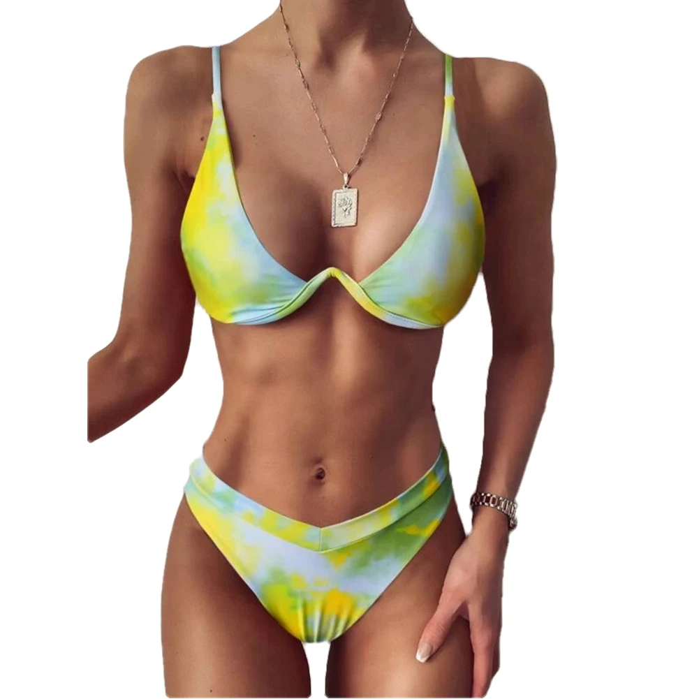 Женский купальник-бикини с завязками и краской, с подкладкой, пуш-ап, купальник с высокой талией, купальник для пляжа, купальный костюм из двух предметов
