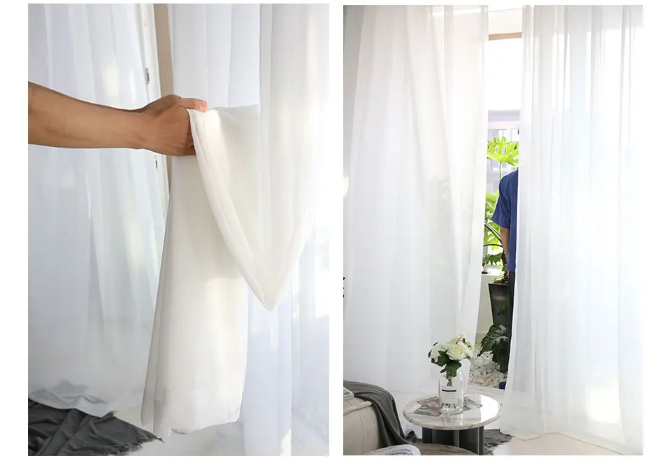 Современные шифоновые занавески из белого тюля для гостиной, занавески на окна для спальни, однотонные прозрачные Занавески Из вуали для кухни, занавески