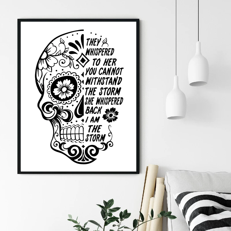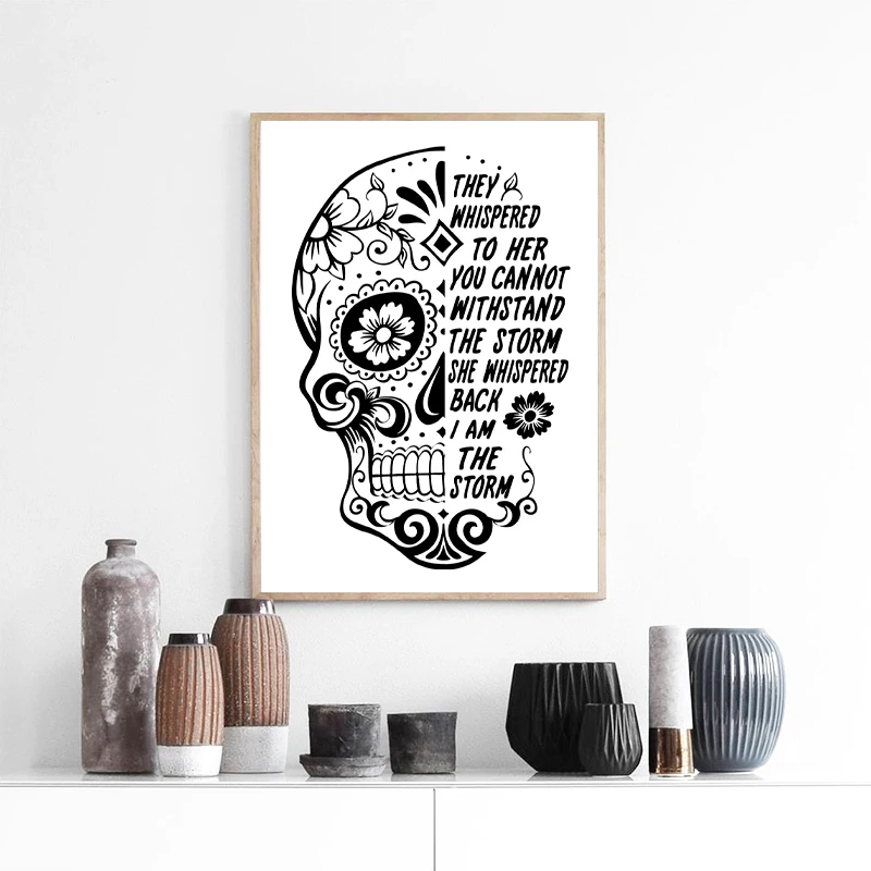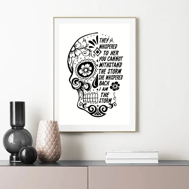 Художественный постер с принтом сахарного черепа, современный положительный постер с цитатами, черно-белый минималистичный настенный холст, картина для офиса, спальни, декор для стен