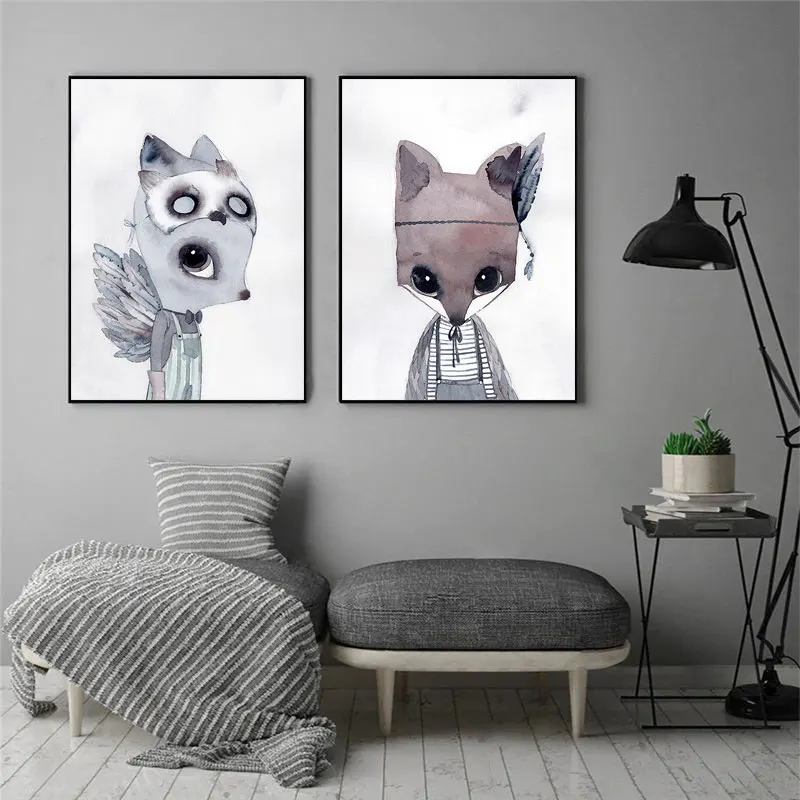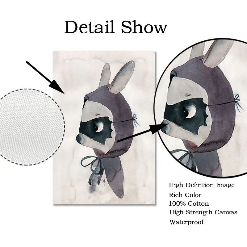 Скандинавский Милый домашний декор, скандинавский Картина на холсте, настенное художественное изображение кролика, акварельный мультяшный постер для детской спальни