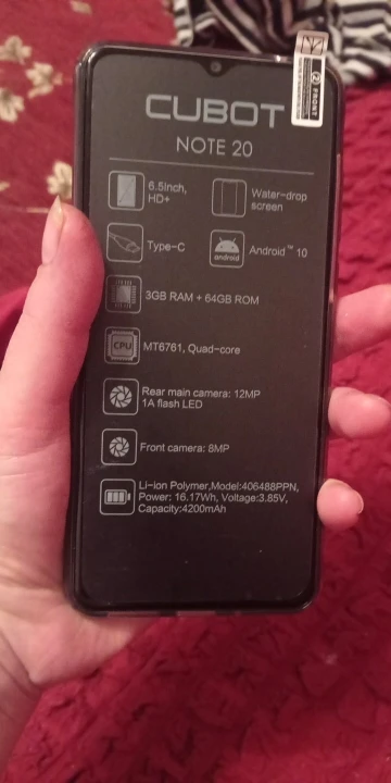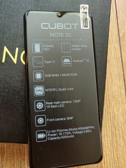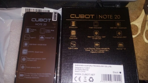 Cubot Note 20 смартфон с 5,5-дюймовым дисплеем, четырёхъядерным процессором, ОЗУ 3 ГБ, ПЗУ 64 ГБ, 6,5 мАч, Android 10