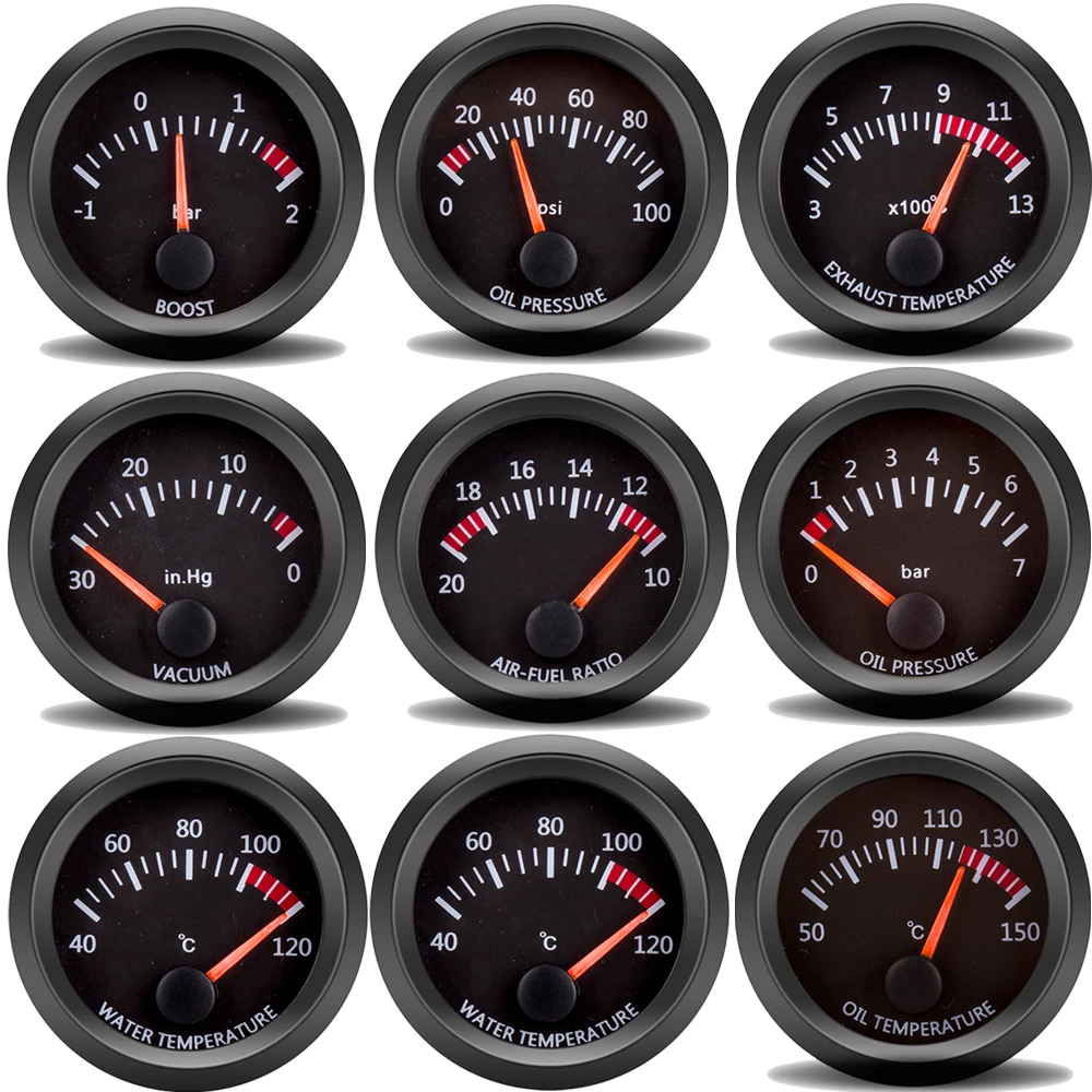 52 мм Датчик температуры воды 12 В датчик температуры масла давление масла Датчик напряжения воздуха соотношение воздуха и топлива Boost температура выхлопа автомобильный счетчик черный корпус