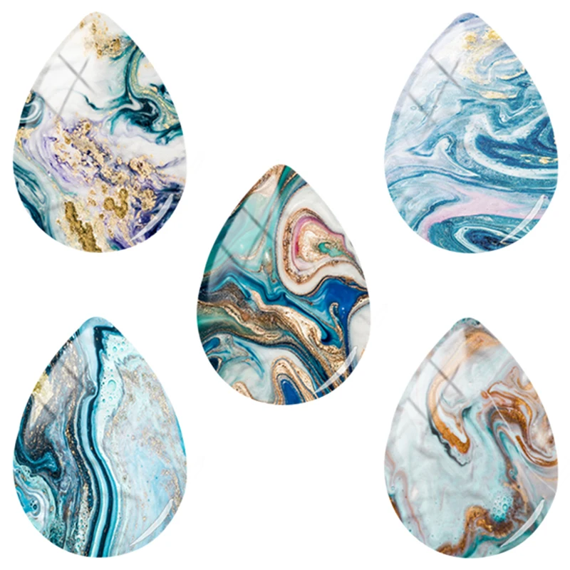 TitleQuicksand Texture Pattern Tear Drop Glass Cabochon Jewelry Findings
